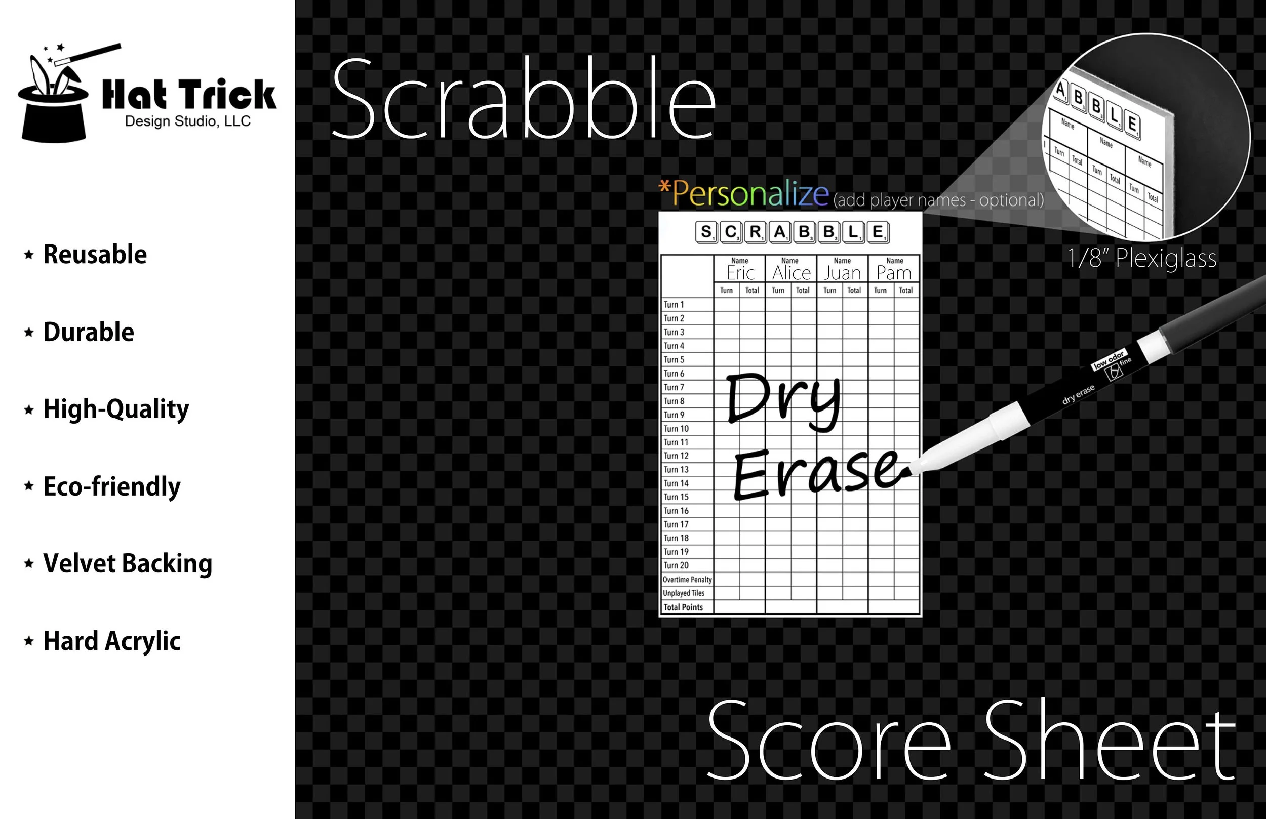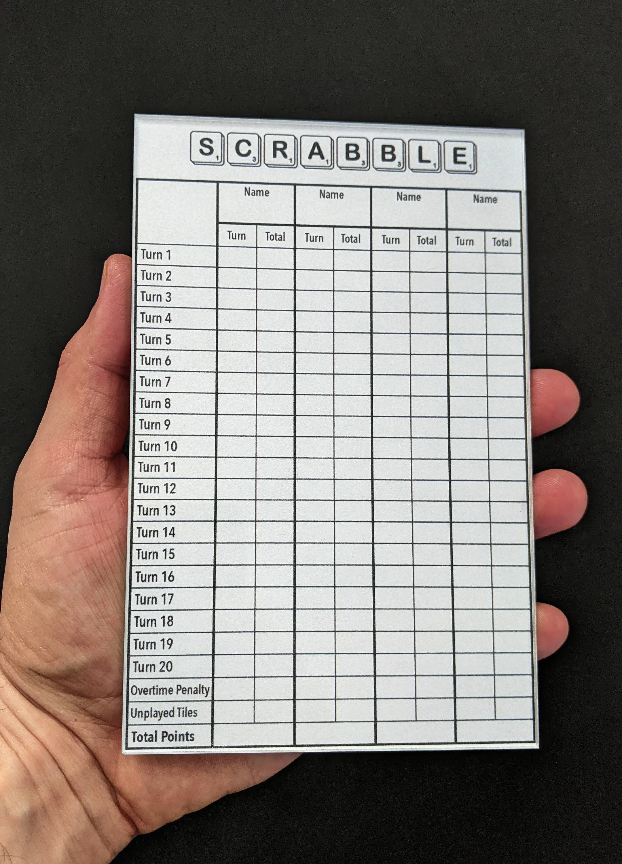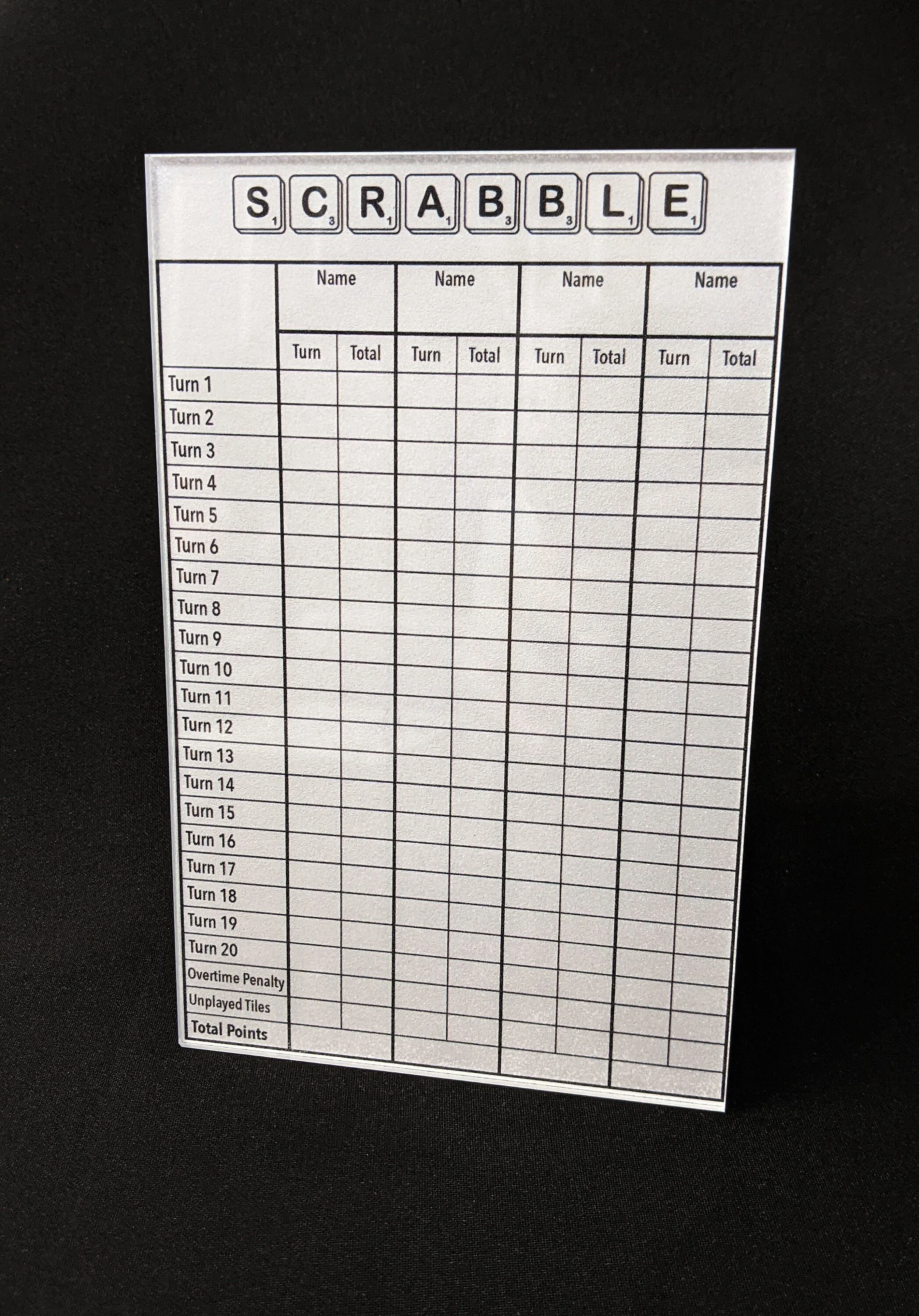 Acrylic Scrabble Score Sheet: Reusable Dry Erase Board