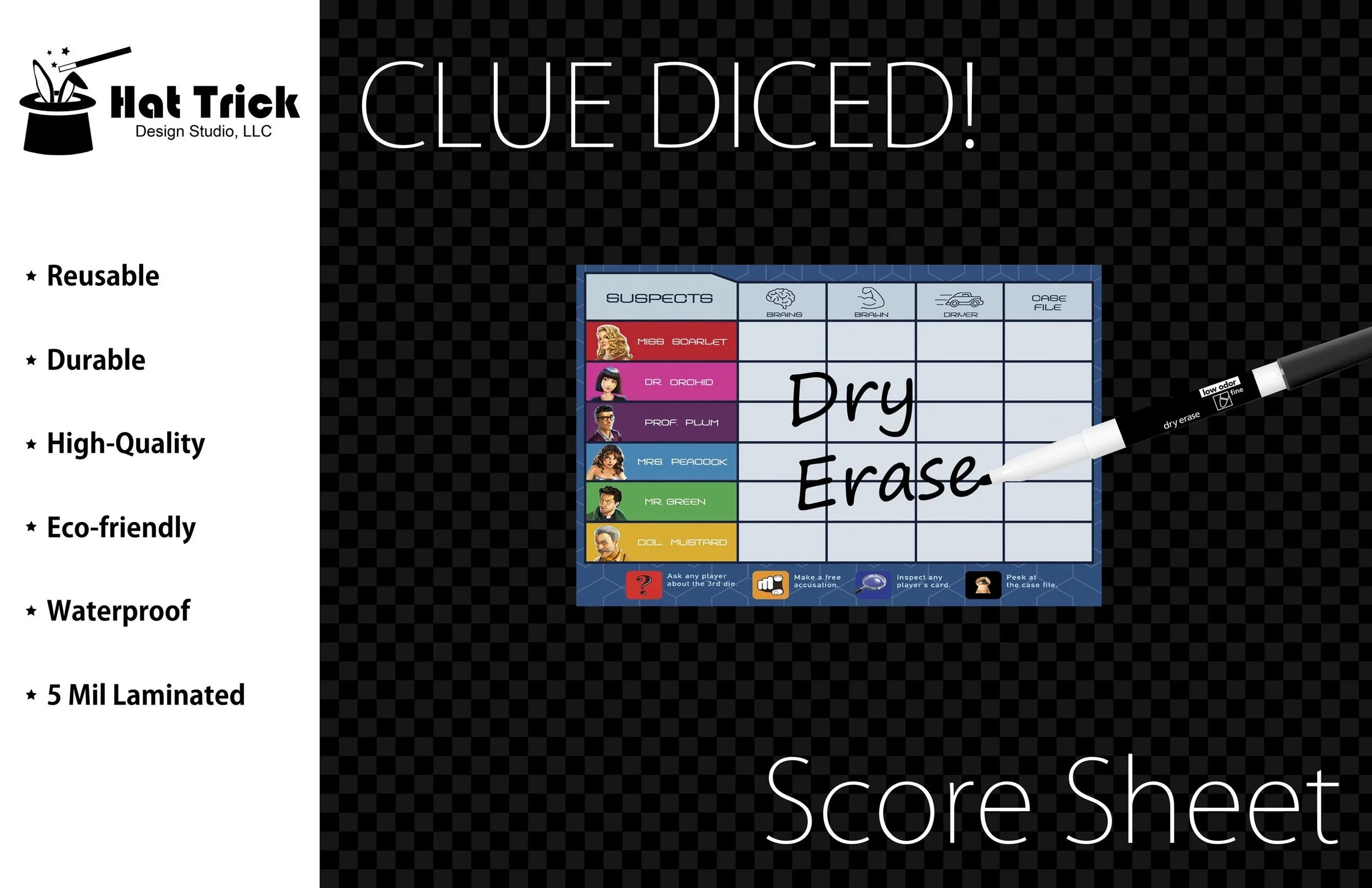 This listing is for one (1) Laminated Clue Diced! Score Sheet, but you can order as many as you need.