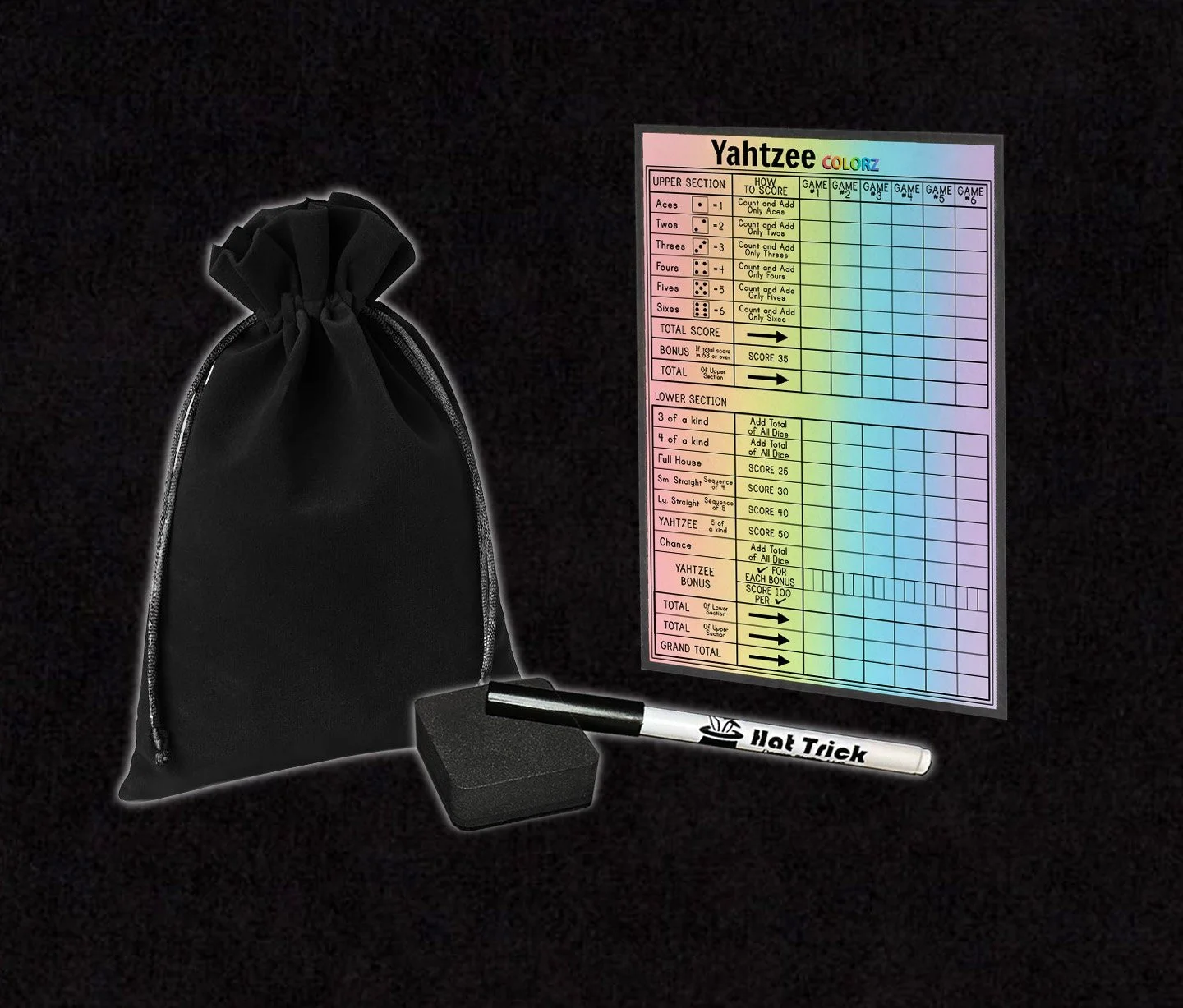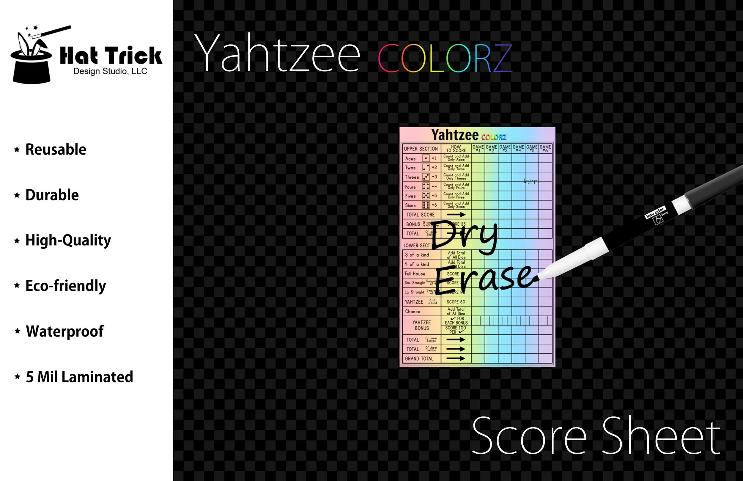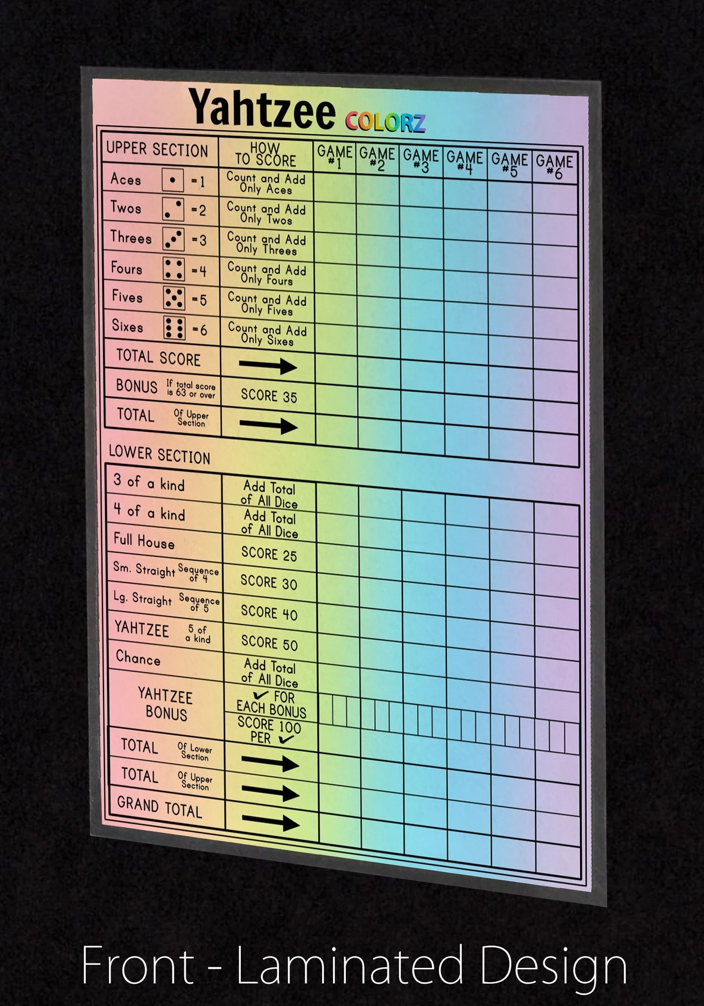 These Yahtzee Colorz Score Sheets are printed and laminated with HIGH QUALITY materials and designed to be reused over and over again.