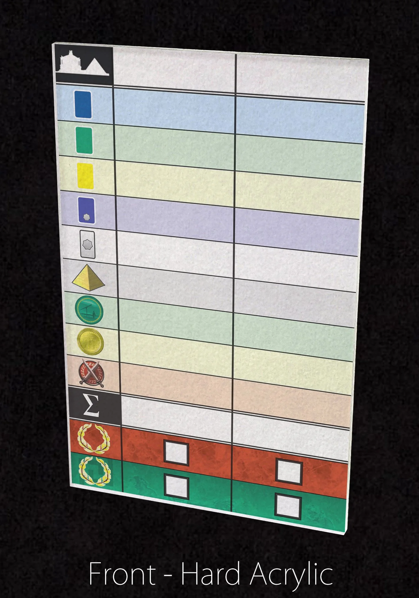 Premium Acrylic 7 Wonders Duel Pantheon Score Sheet Upgrade, Reusable, Dry Erase