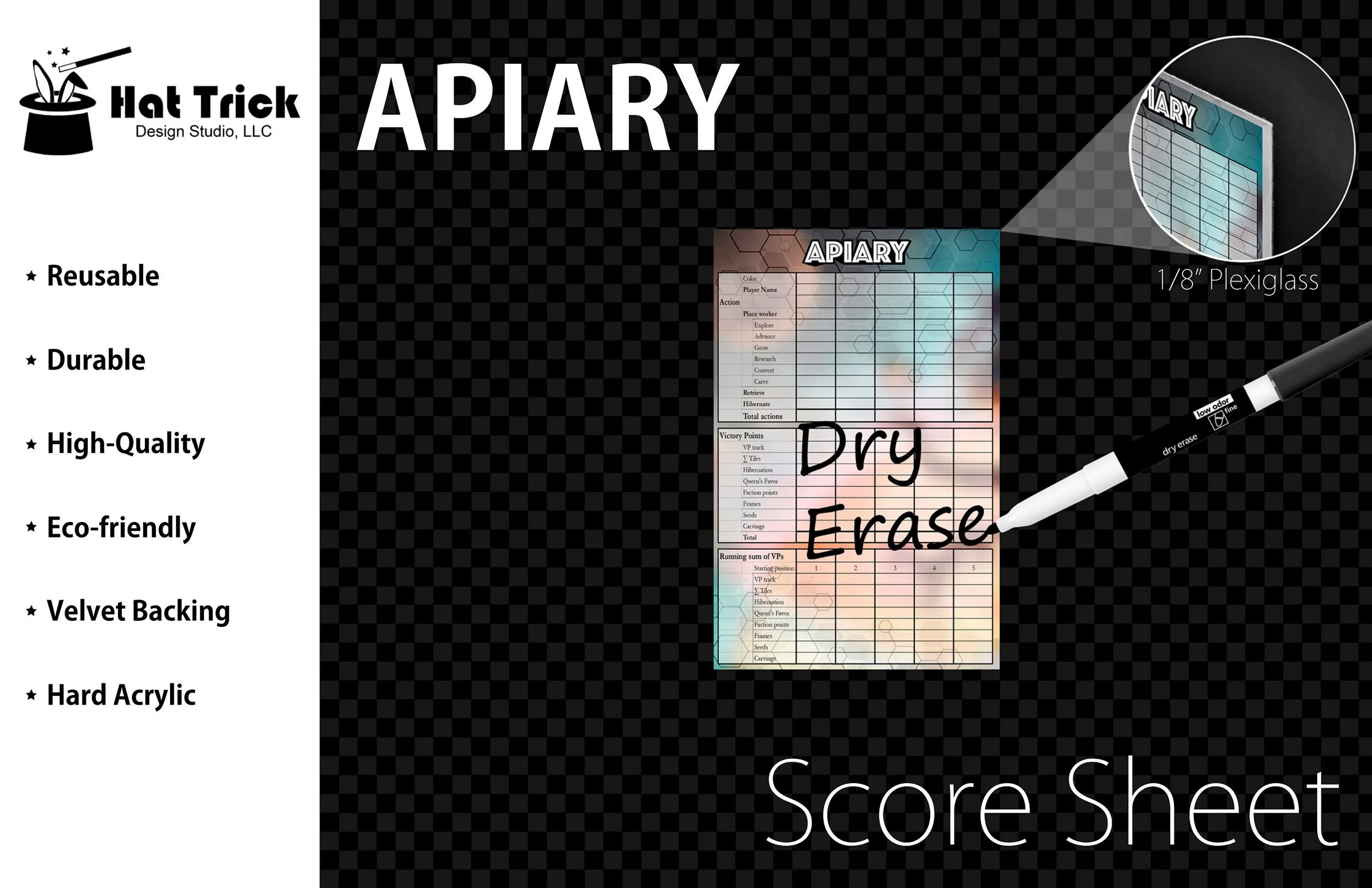 Premium Acrylic Apiary Score Sheet Plaque Upgrade, Reusable, Dry Erase