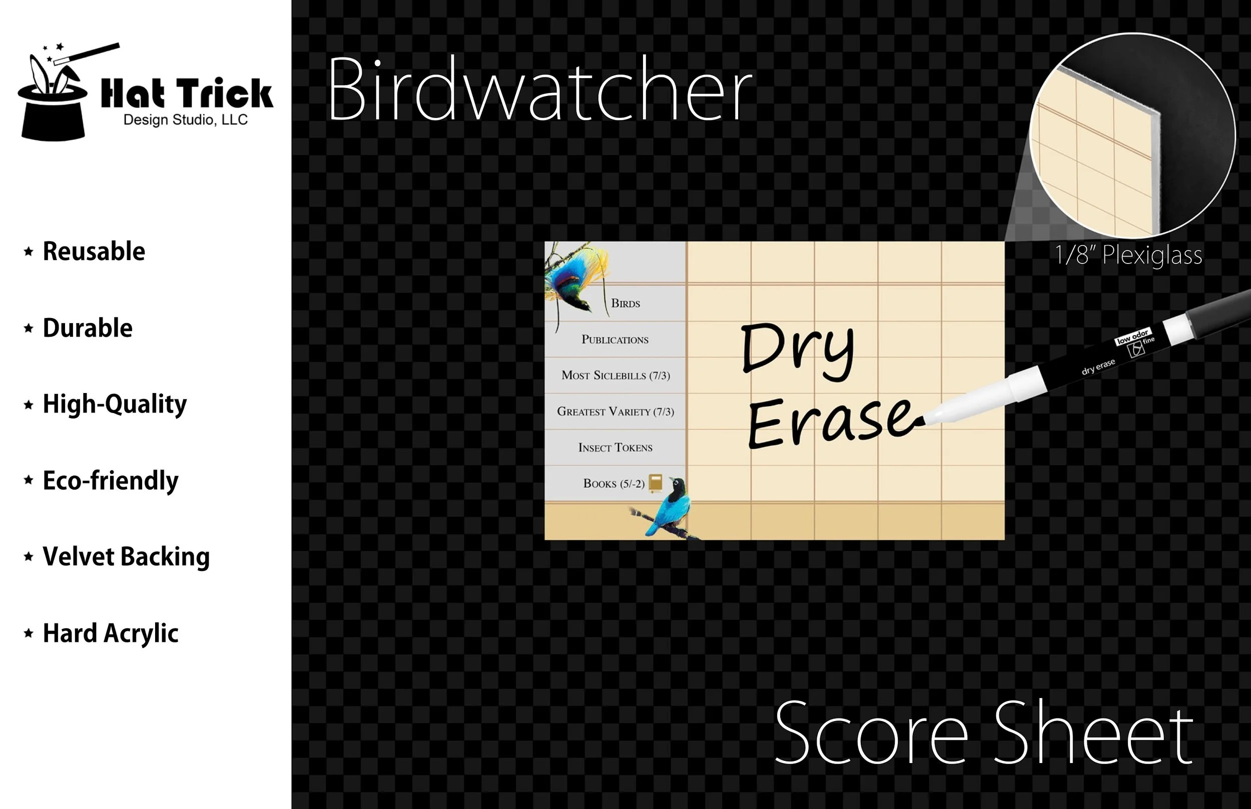 Premium Acrylic Birdwatcher Score Sheet Upgrade, Reusable, Wet Erase and Dry Erase