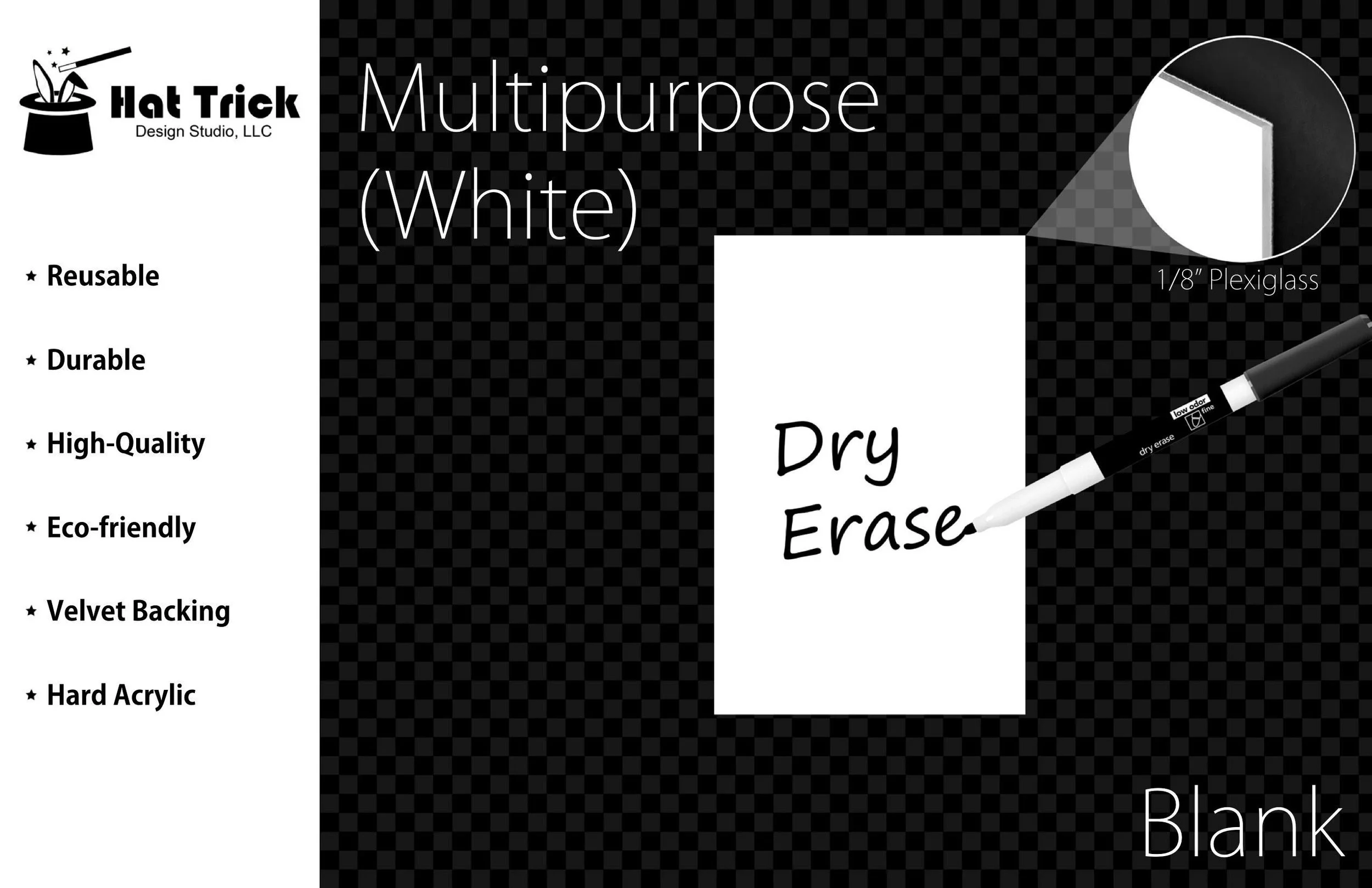 These white multipurpose dry-erase plaques are made of 1/8" PREMIUM ACRYLIC.