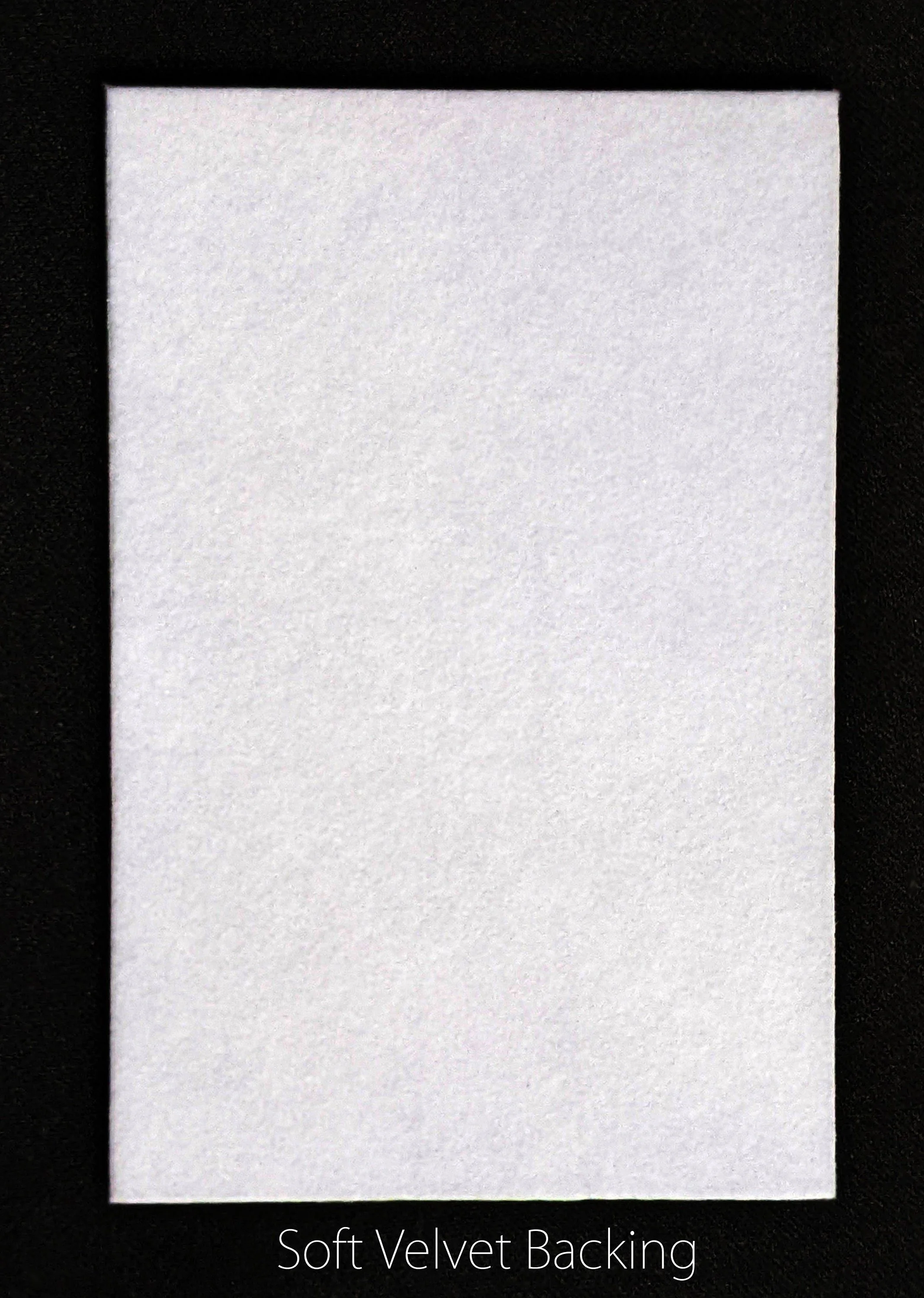 The backing is finished with a white velvet texture that is SOFT TO THE TOUCH.