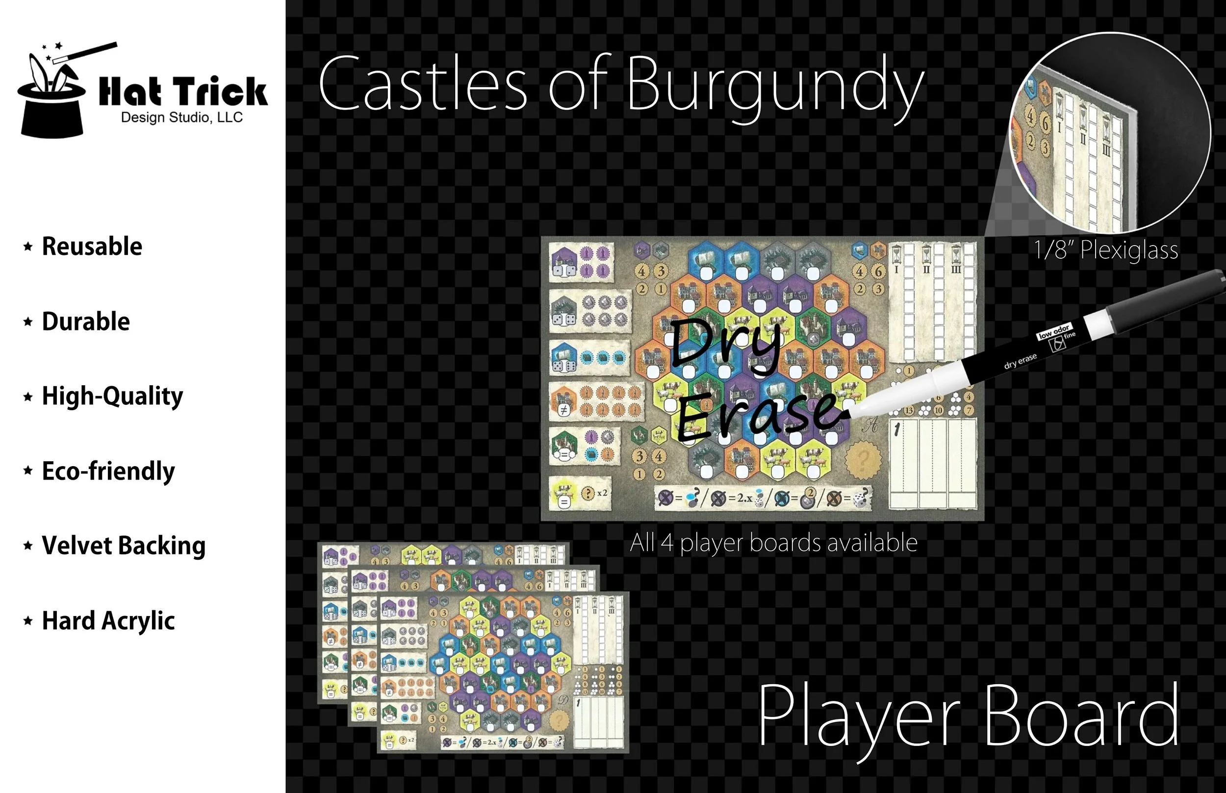 Premium Acrylic Castles of Burgundy Player Board Upgrades, Reusable, Dry Erase