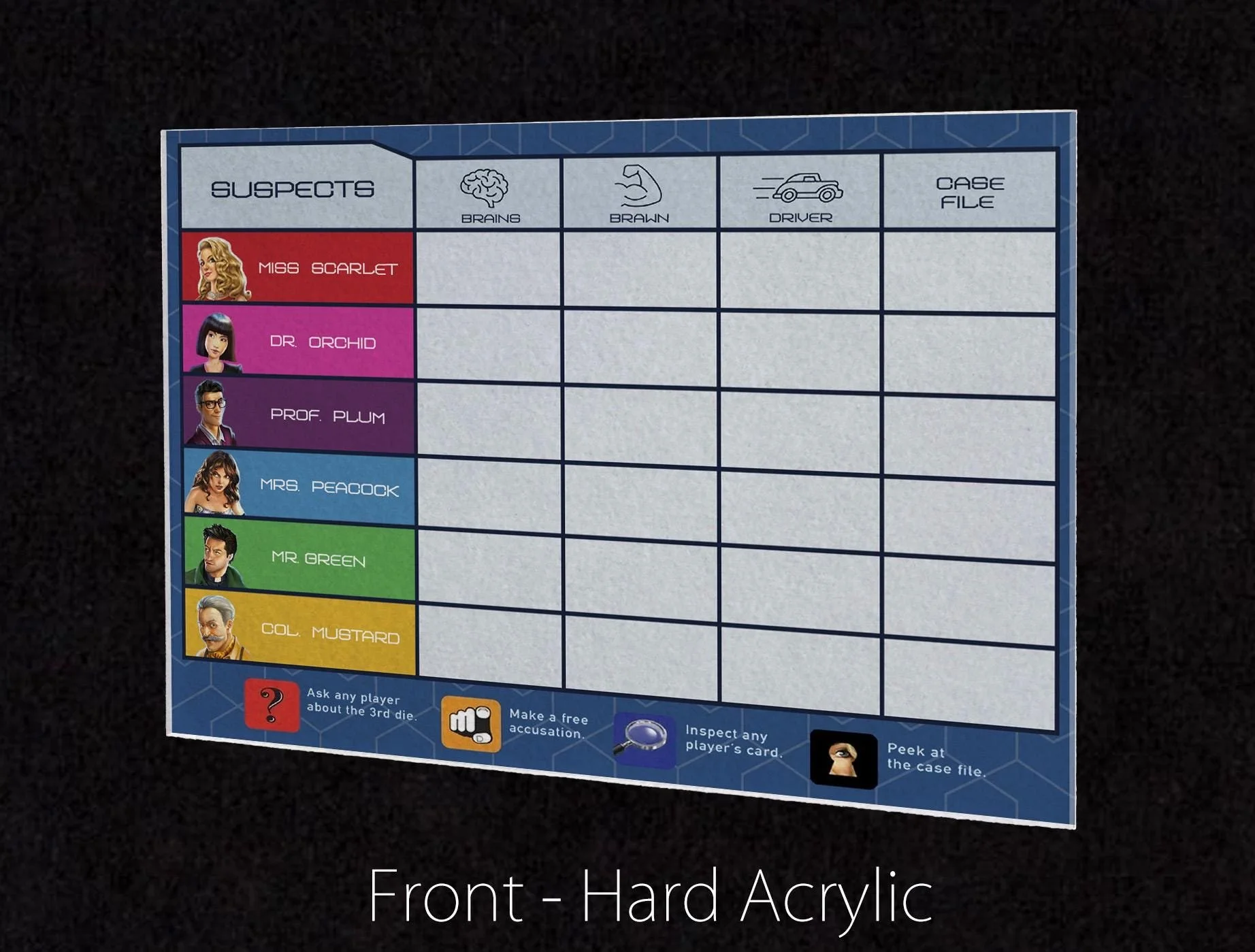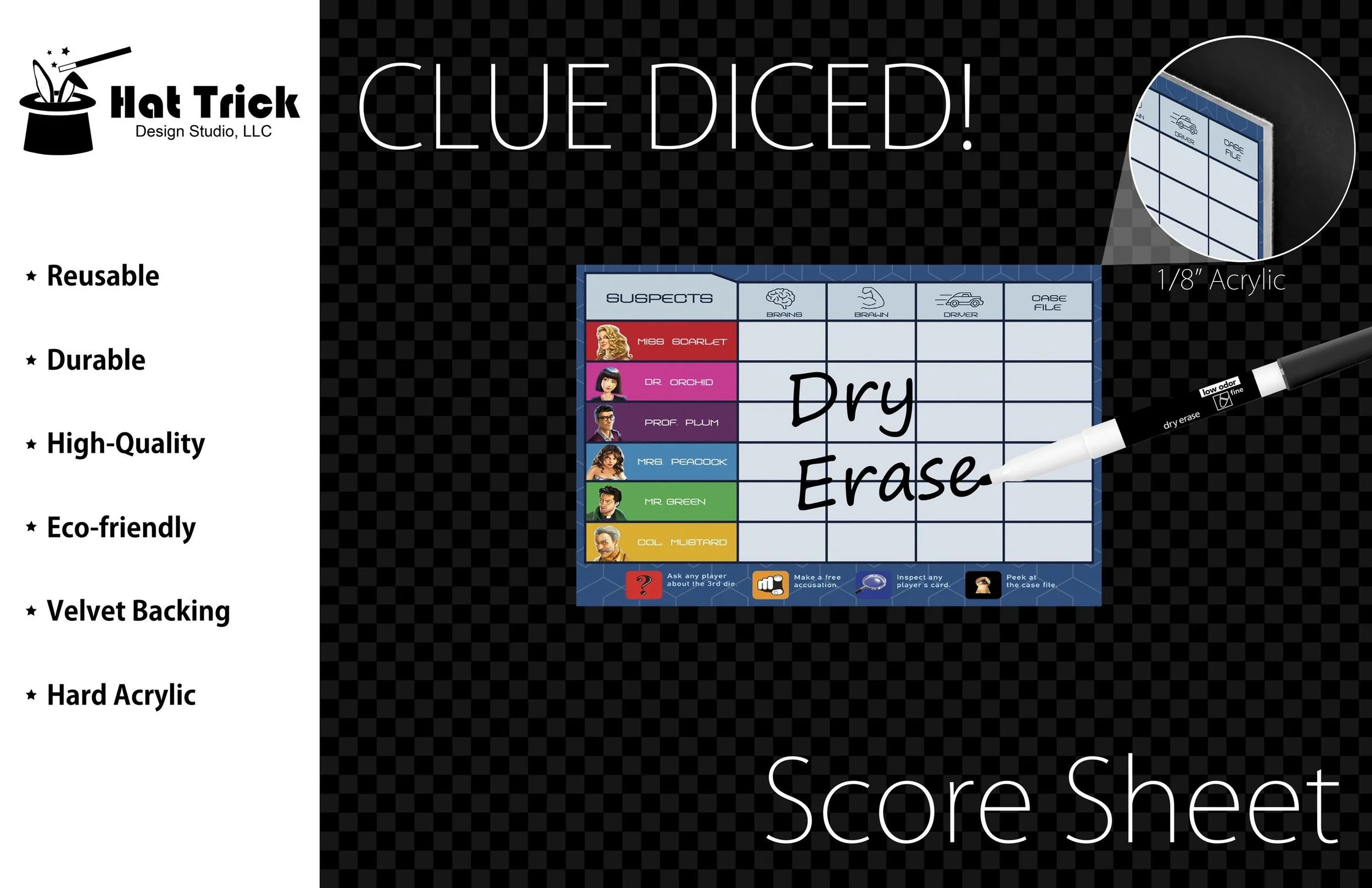Premium Acrylic Clue Diced! Score Sheet Upgrade, Reusable, Wet Erase and Dry Erase