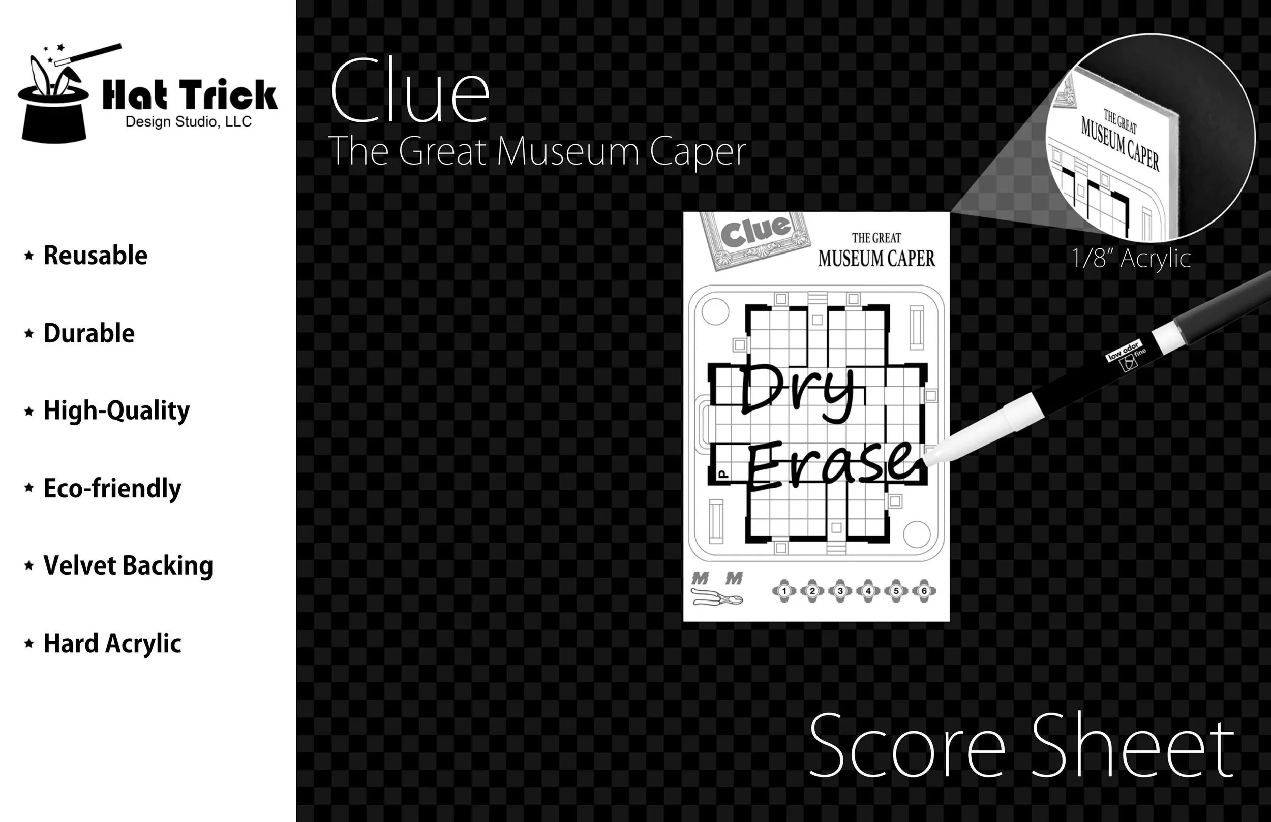 Premium Acrylic Clue: The Great Museum Caper Score Sheet Upgrade, Reusable, Wet Erase and Dry Erase