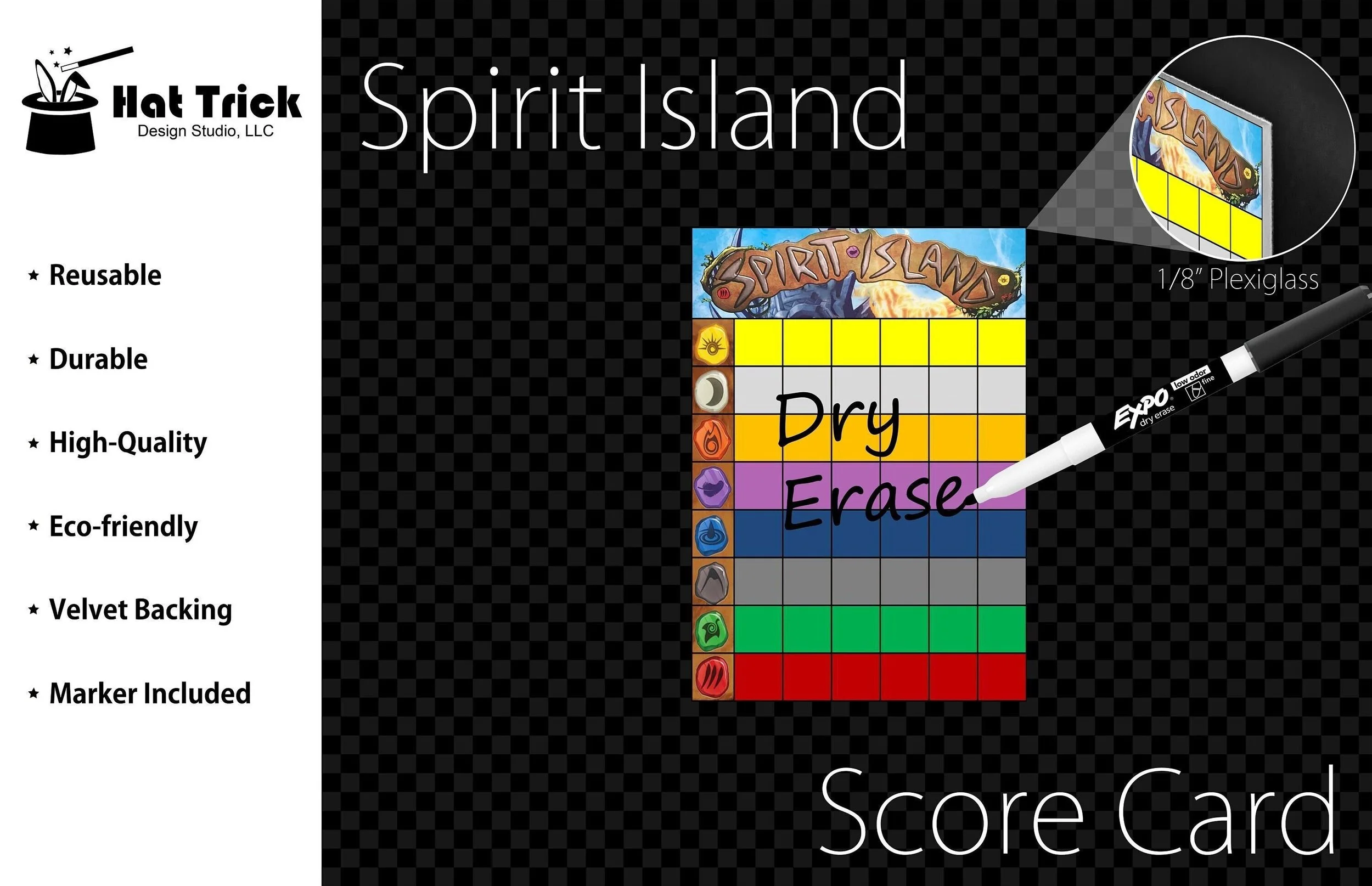 Premium Acrylic Deluxe Spirit Island Score Sheet Upgrade, Reusable, Dry Erase