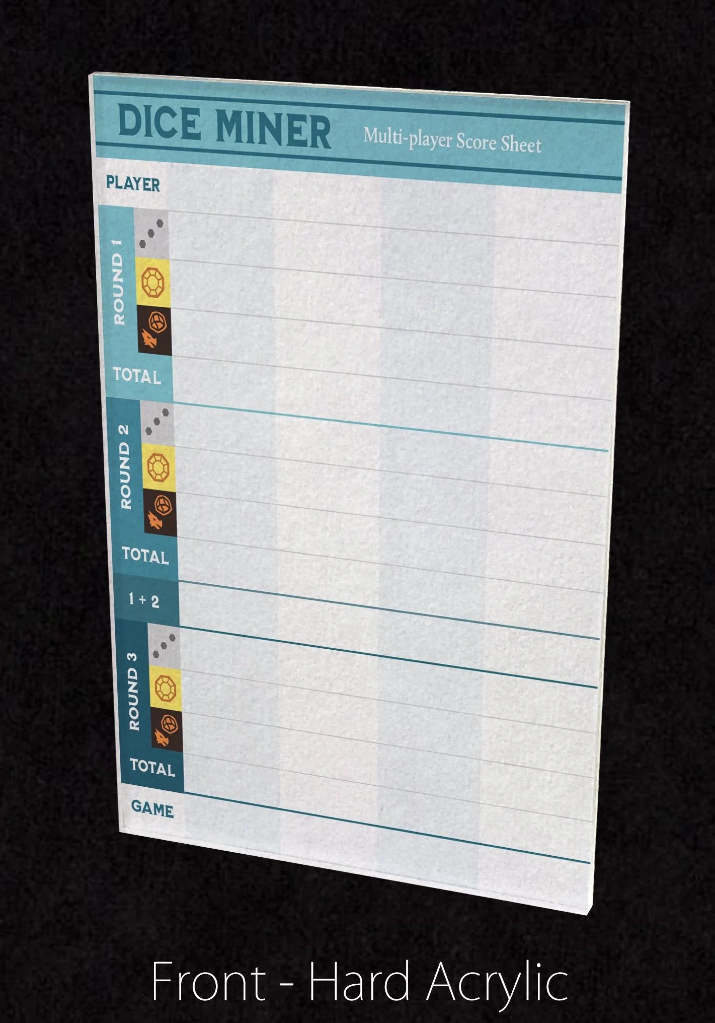 This listing is for one (1) Premium Acrylic Dice Miner Score Sheet, but you can order as many as you need.