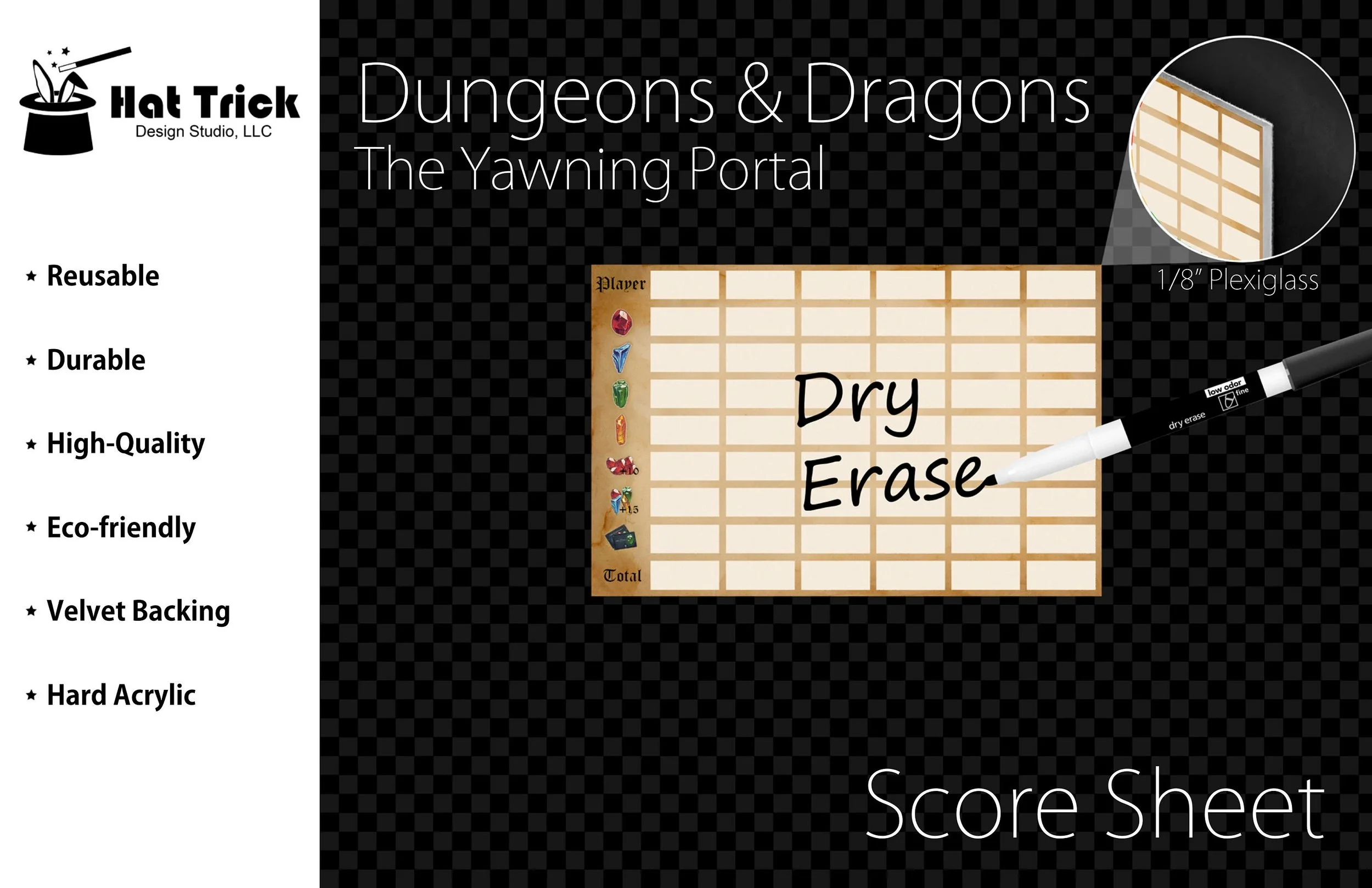 This listing is for one (1) Premium Acrylic Dungeons & Dragons The Yawning Portal Score Sheet, but you can order as many as you need.