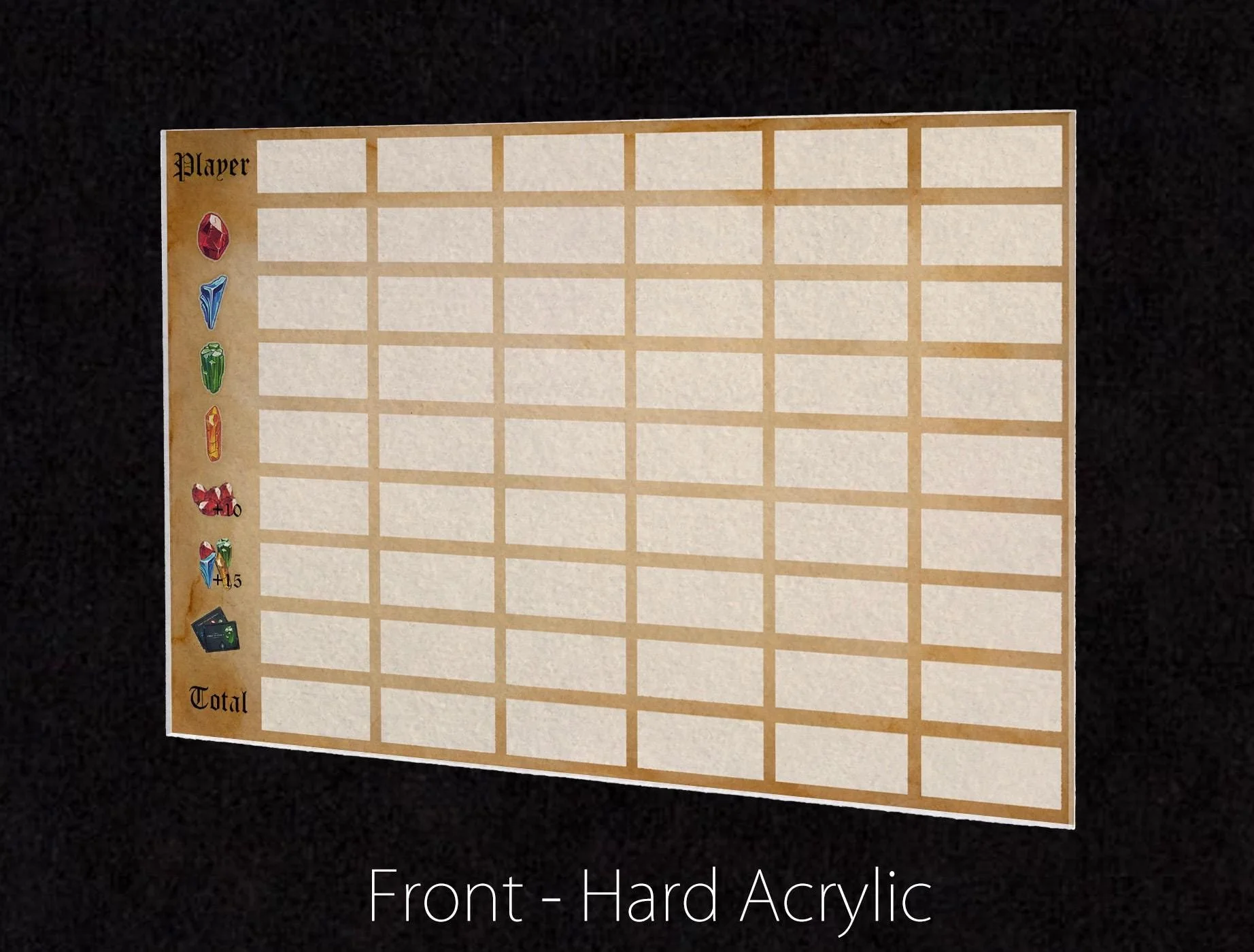 These Dungeons & Dragons The Yawning Portal Score Sheets are made of 1/8" PREMIUM ACRYLIC. The backing is finished with a white velvet material that is SOFT TO THE TOUCH to protect playing surfaces. Made in the USA with premium DURABLE materials to last for years.