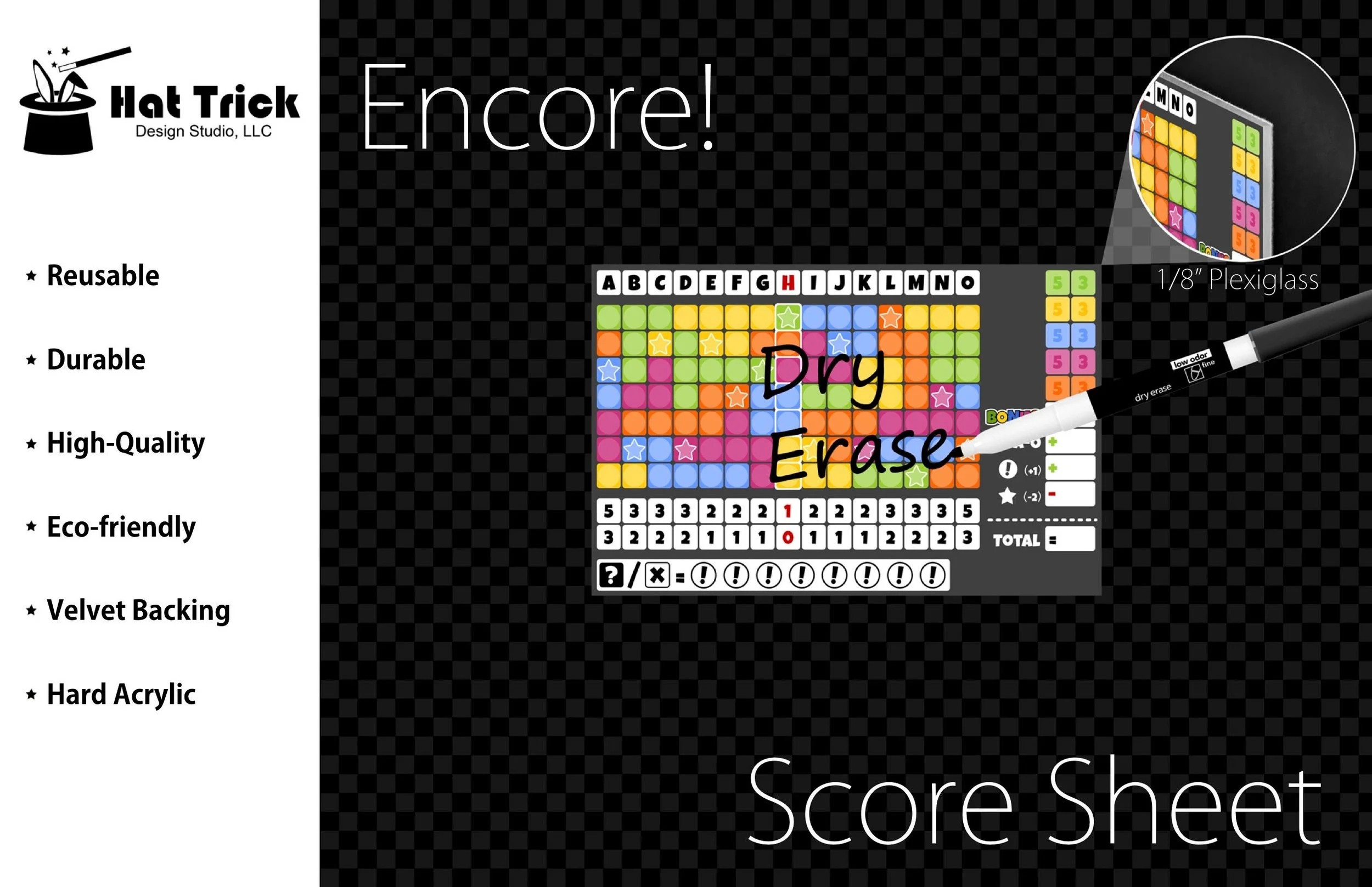 Premium Acrylic Encore! Score Sheet Upgrade, Reusable, Wet Erase and Dry Erase