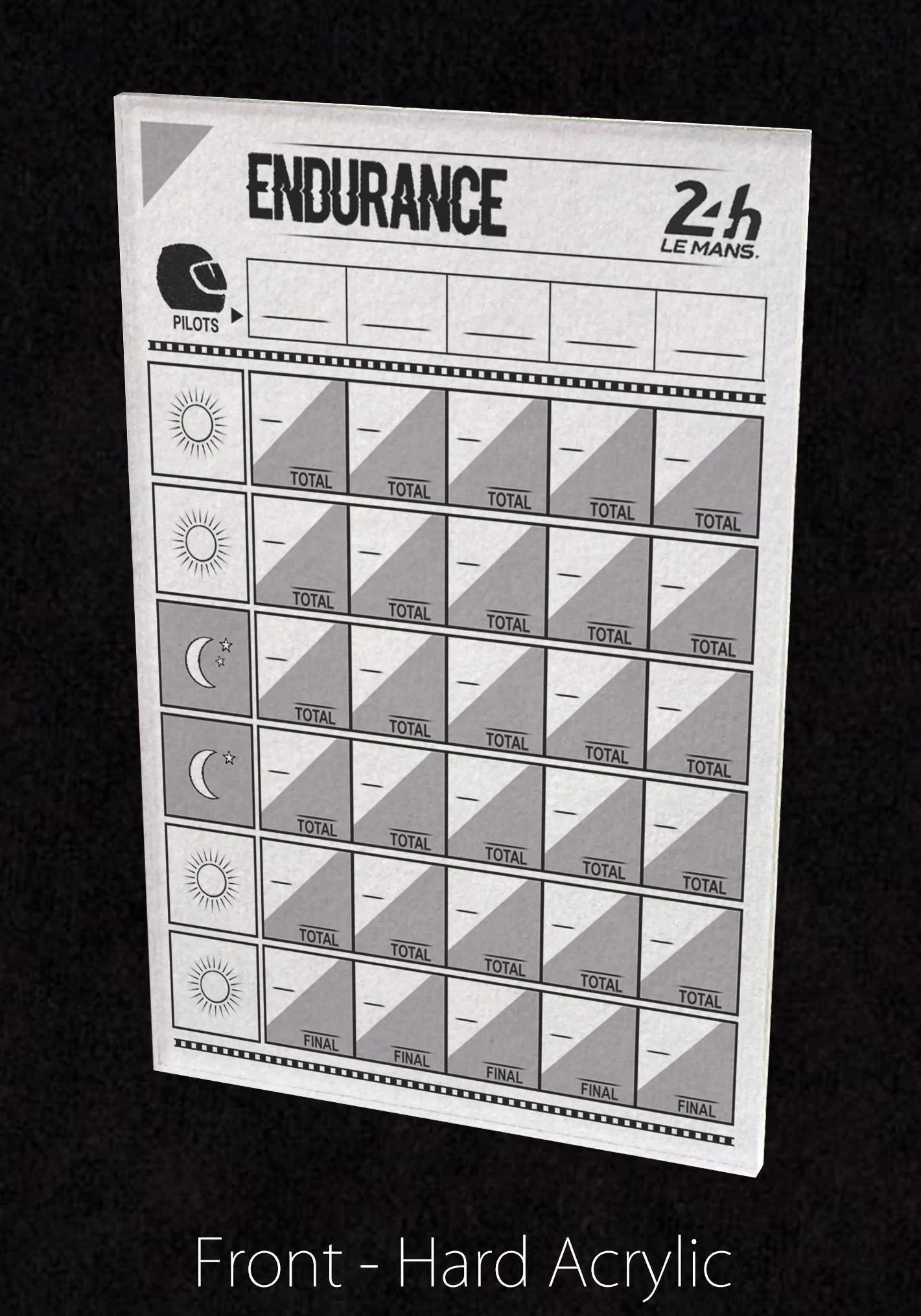 Premium Acrylic Endurance 24h Le Mans Score Sheet Upgrade, Reusable, Dry Erase