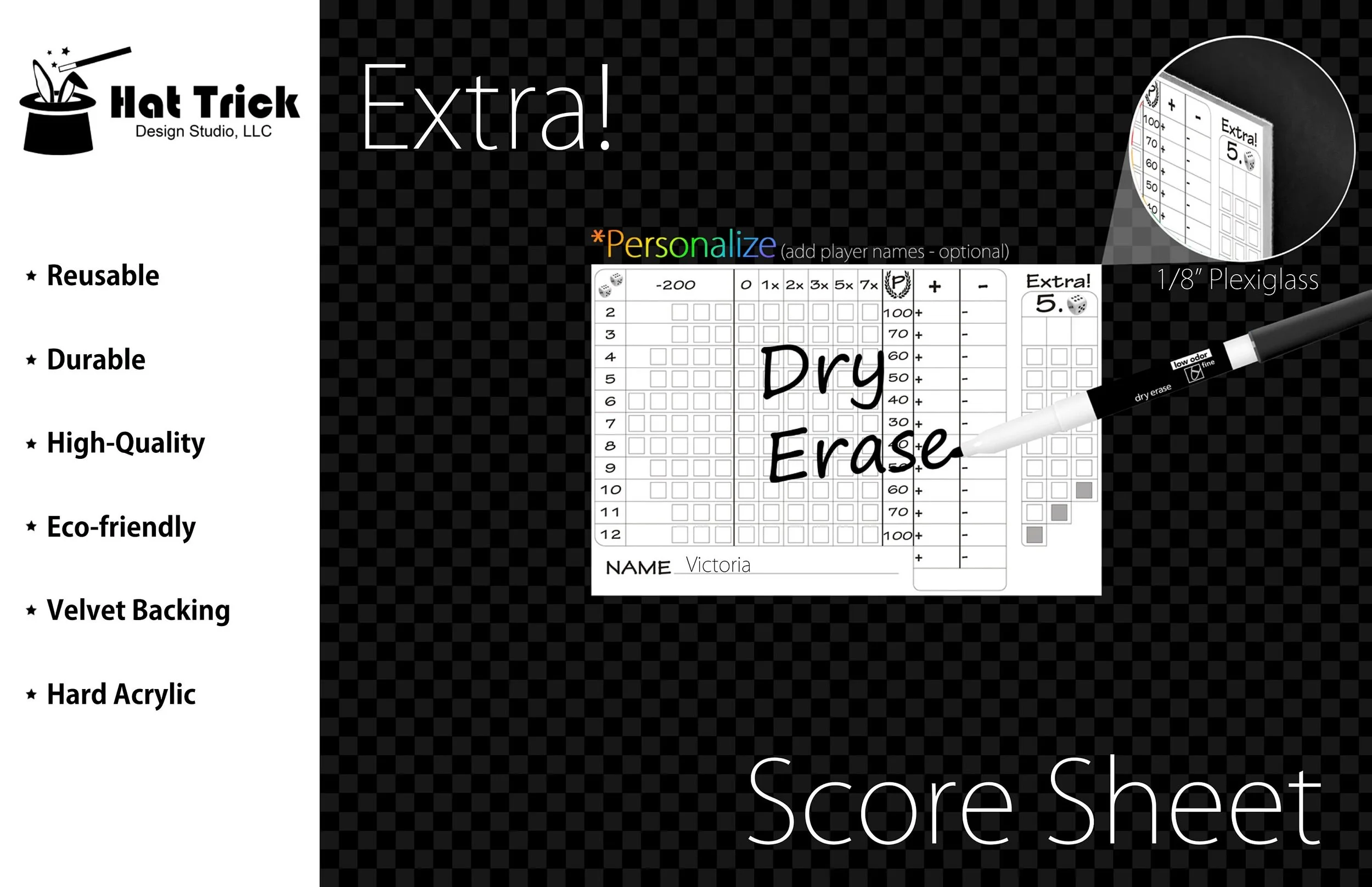 Premium Acrylic Extra! Score Sheet Upgrade, Reusable, Wet Erase and Dry Erase