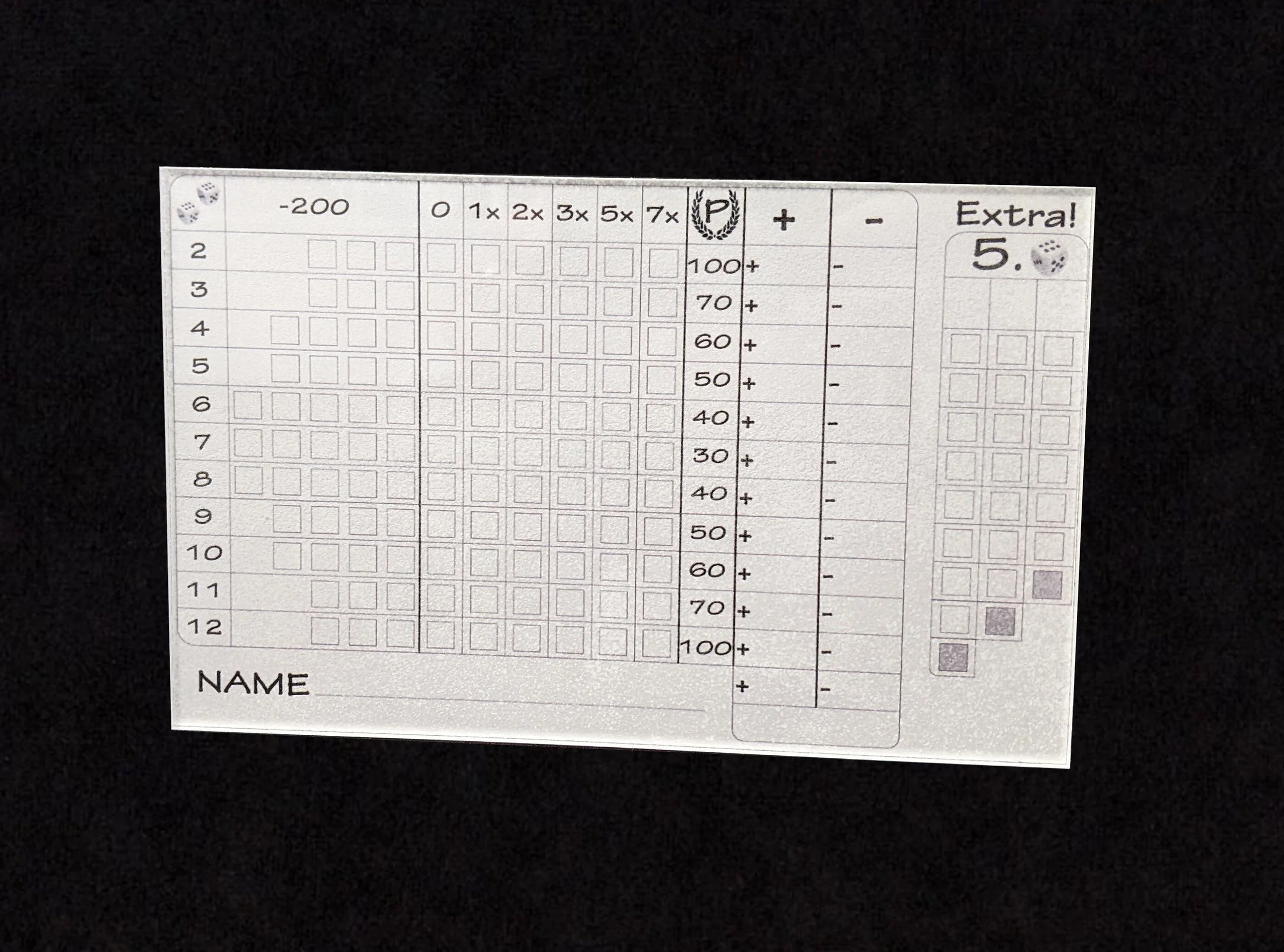 This listing is for one (1) Premium Acrylic Extra! Score Sheet, but you can order as many as you need.