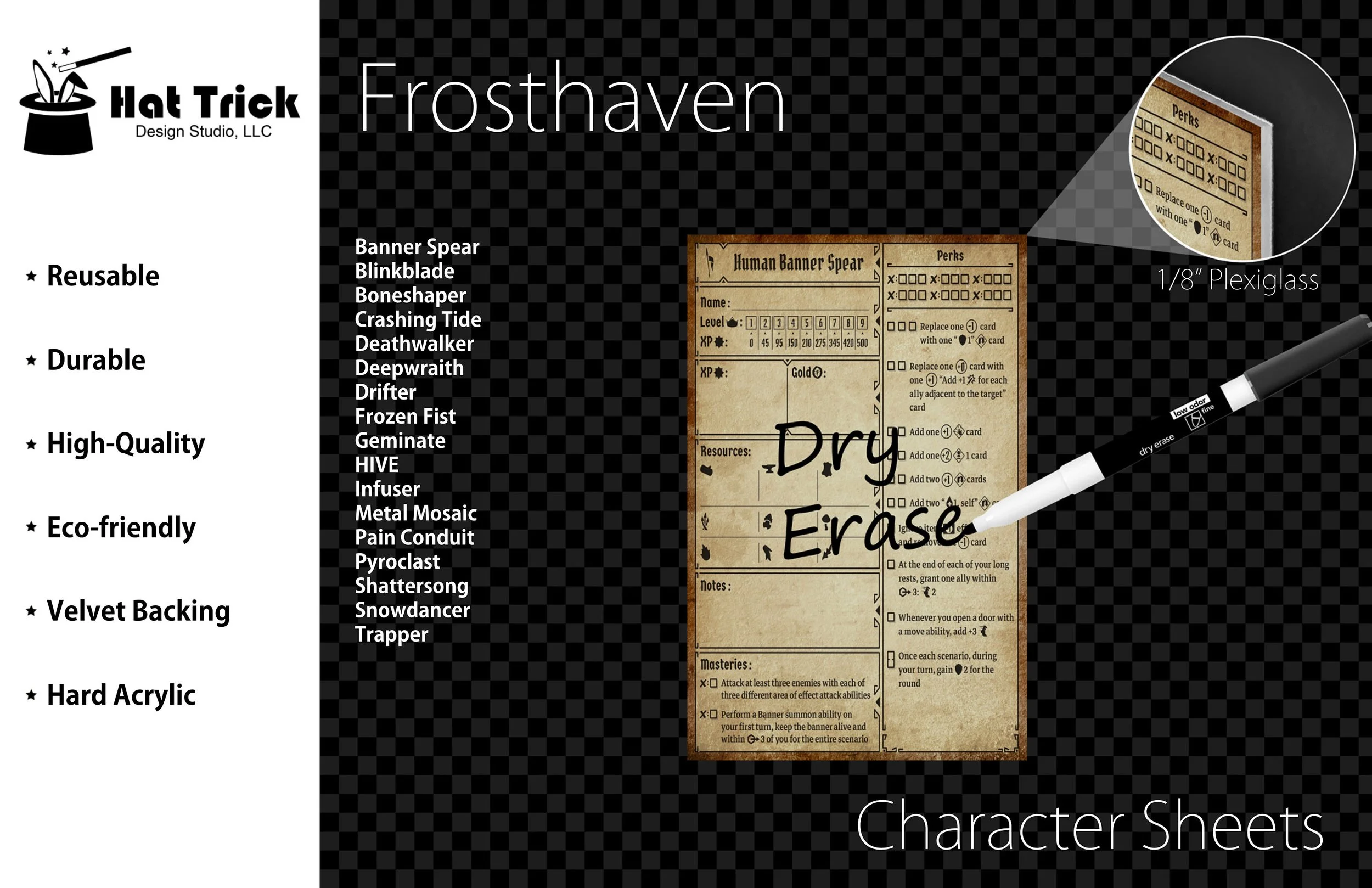 Premium Acrylic Frosthaven Character Sheet Upgrade, Gloomhaven, Forgotten Circles, Jaws of the Lion, Reusable, Dry Erase