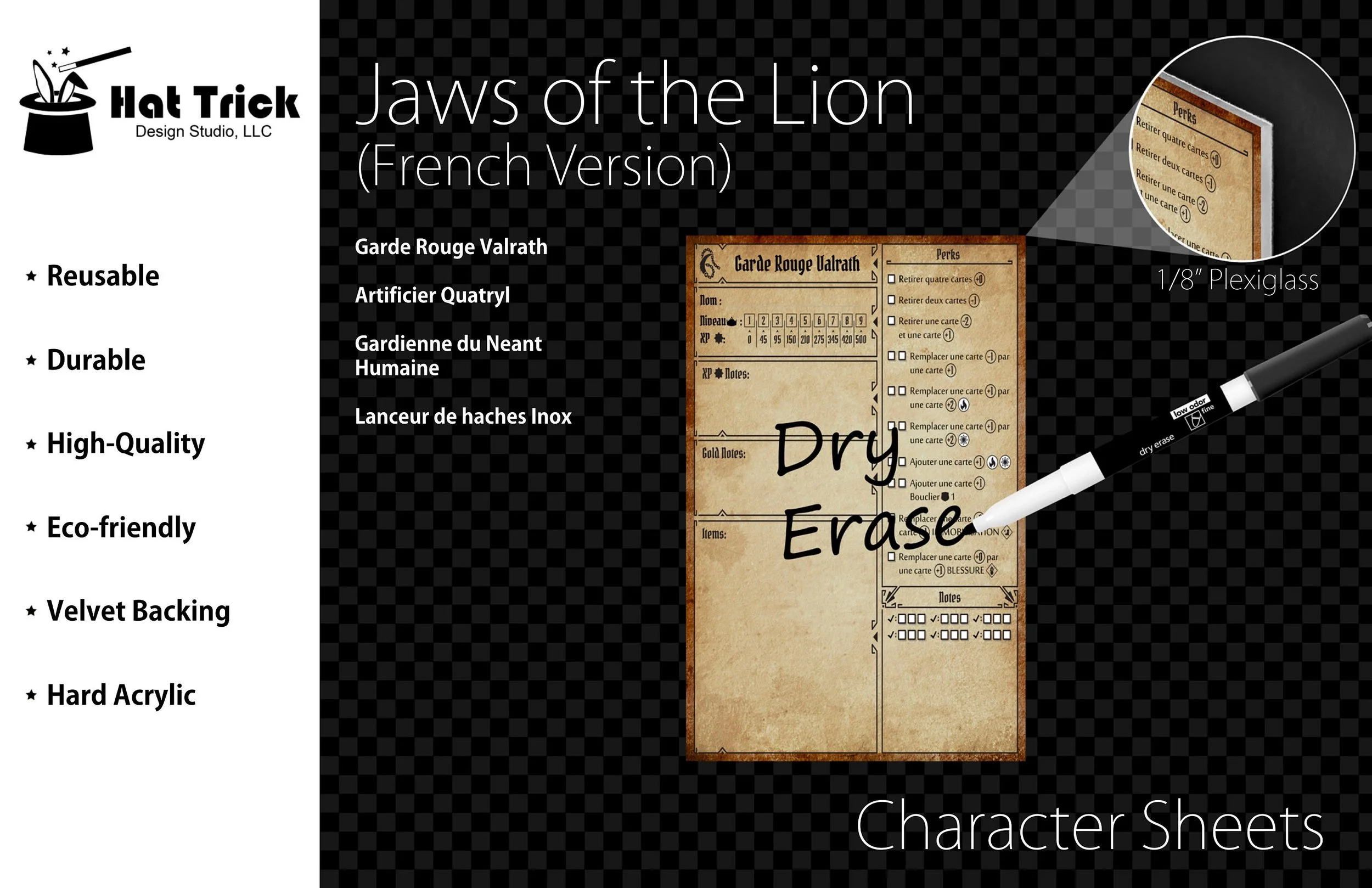 Premium Acrylic Gloomhaven: Jaws of the Lion (FRENCH VERSION) Character Sheet Upgrades, Reusable, Dry Erase