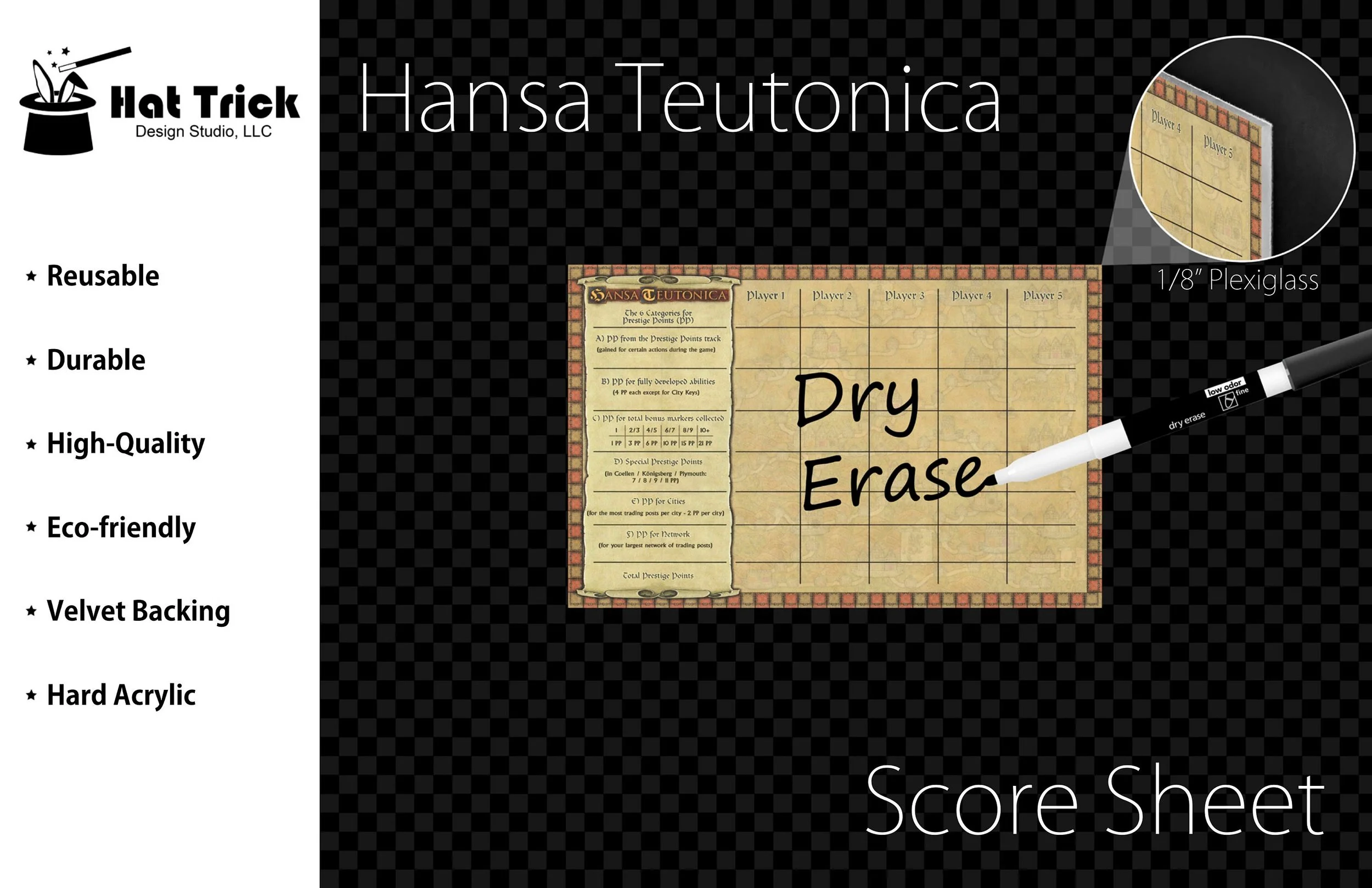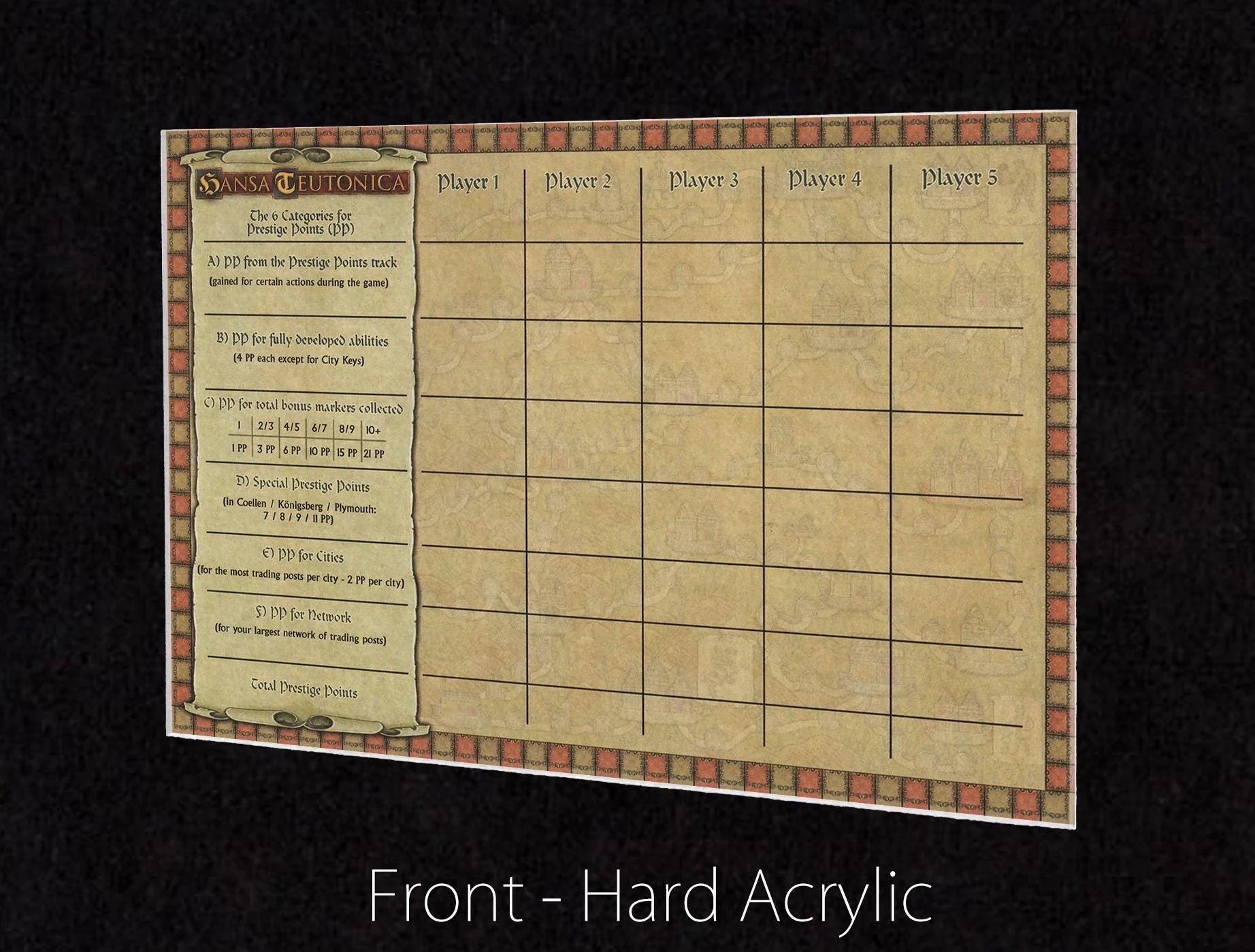Premium Acrylic Hansa Teutonica Score Sheet Upgrade, Reusable, Wet Erase and Dry Erase