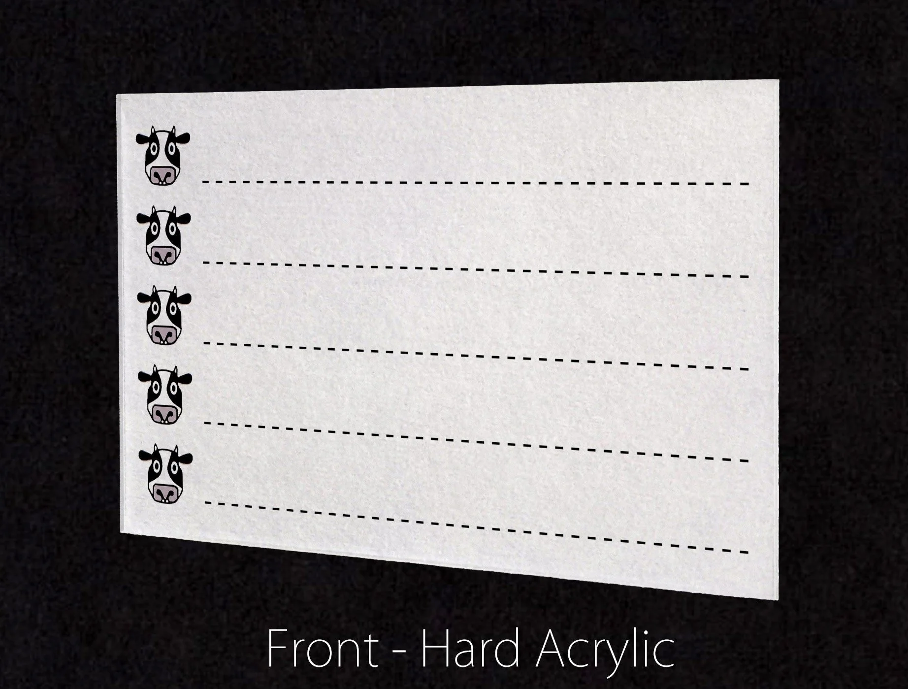 These Hard Acrylic Deluxe Herd Mentality Scoring Plaques are made of 1/8" PREMIUM GRADE PLEXIGLASS. The backing is finished with a white velvet material that is SOFT TO THE TOUCH to protect playing surfaces. Made in the USA with premium DURABLE materials to last for years.