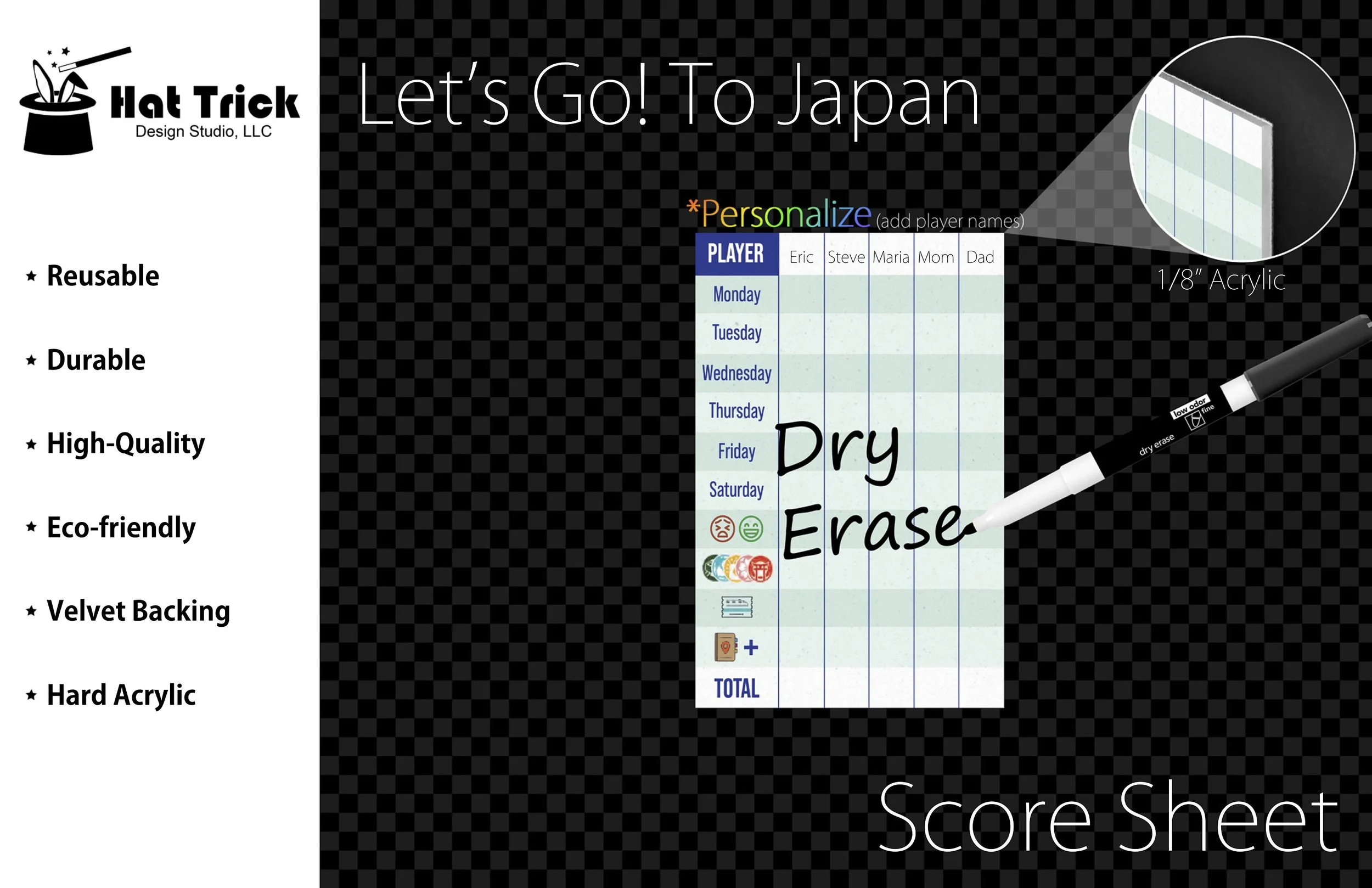 Premium Acrylic Let's Go! To Japan Score Sheet Upgrade, Reusable, Wet Erase and Dry Erase