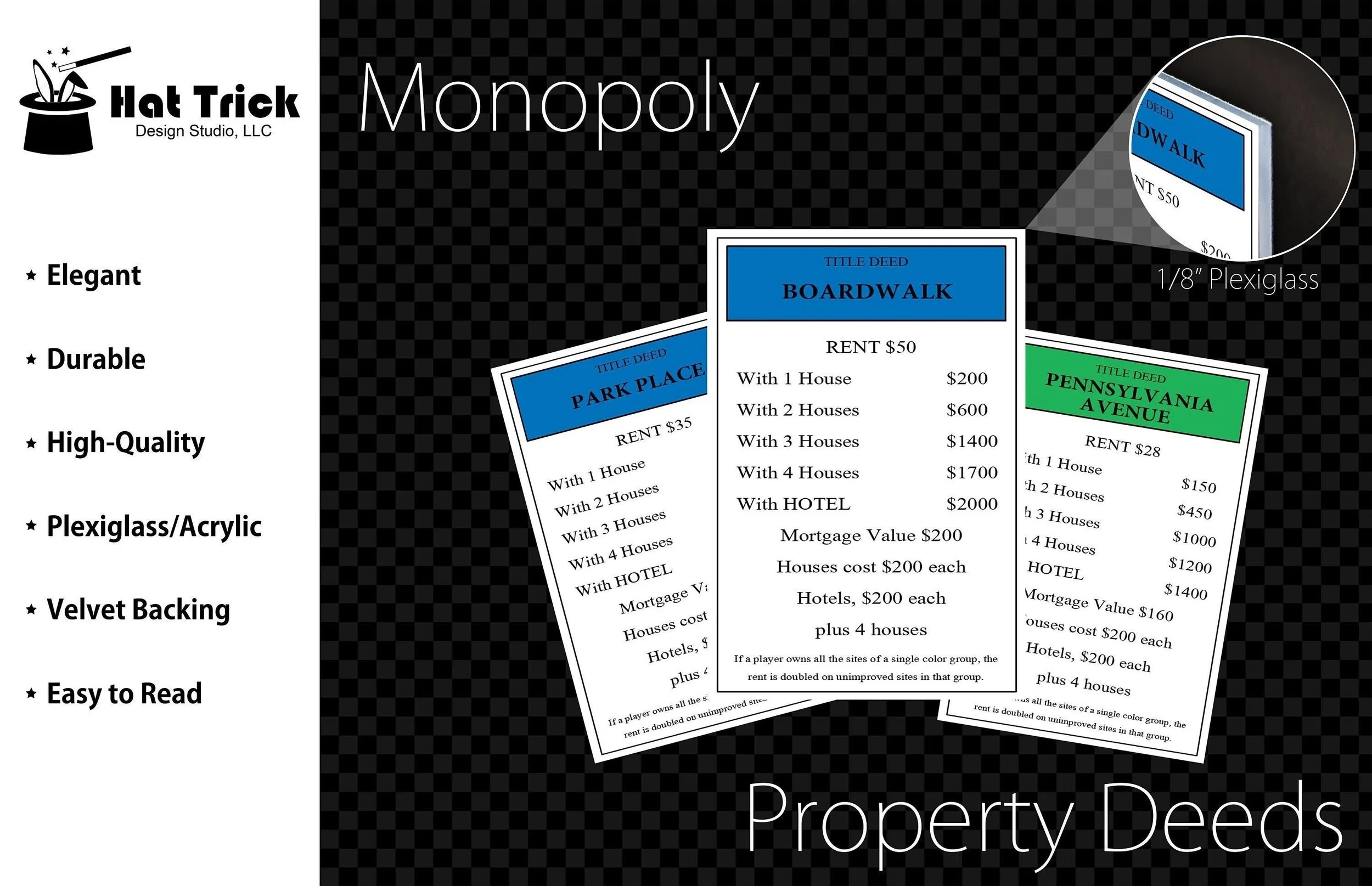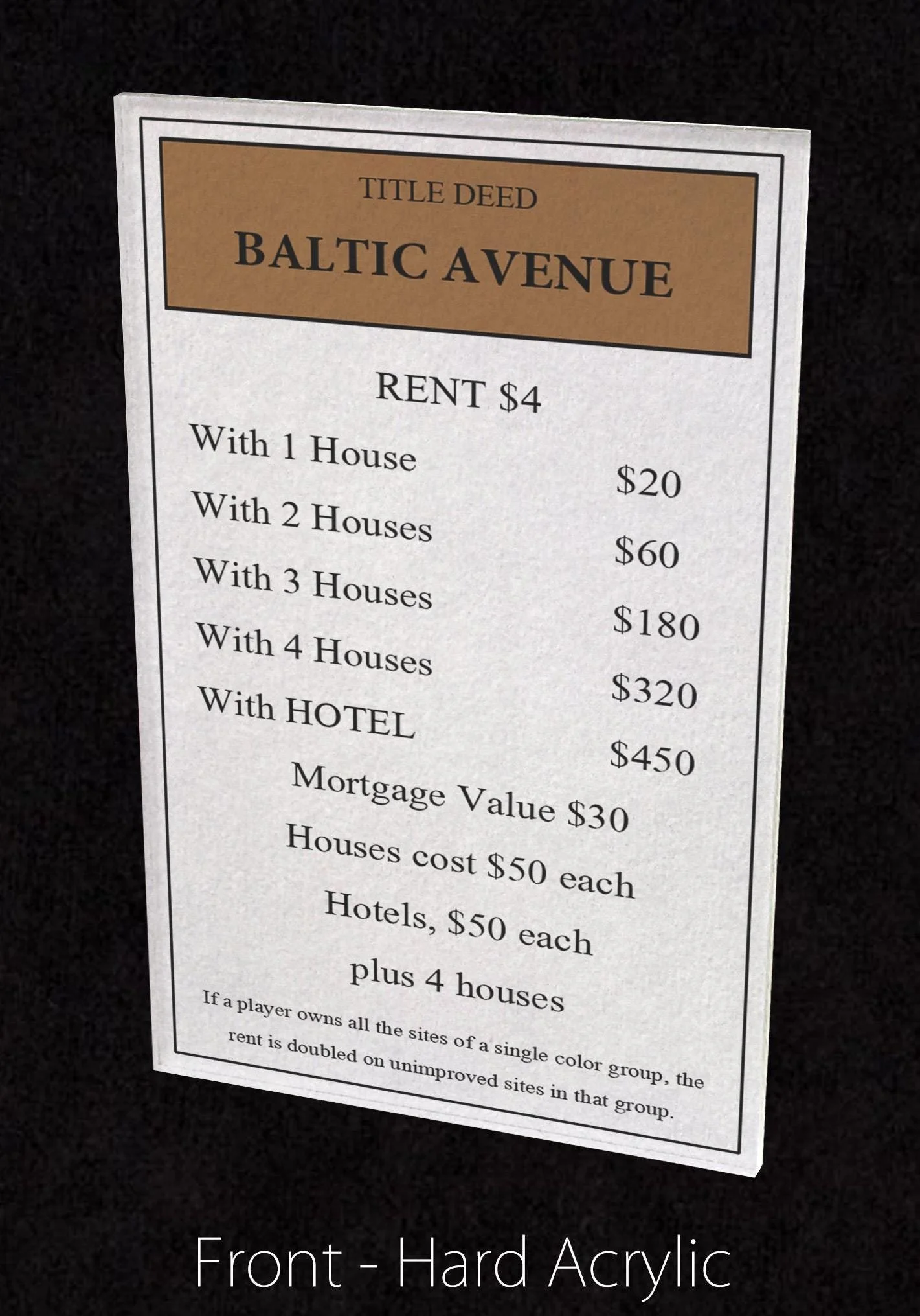 Premium Acrylic Monopoly Property Deed Upgrade Plaques