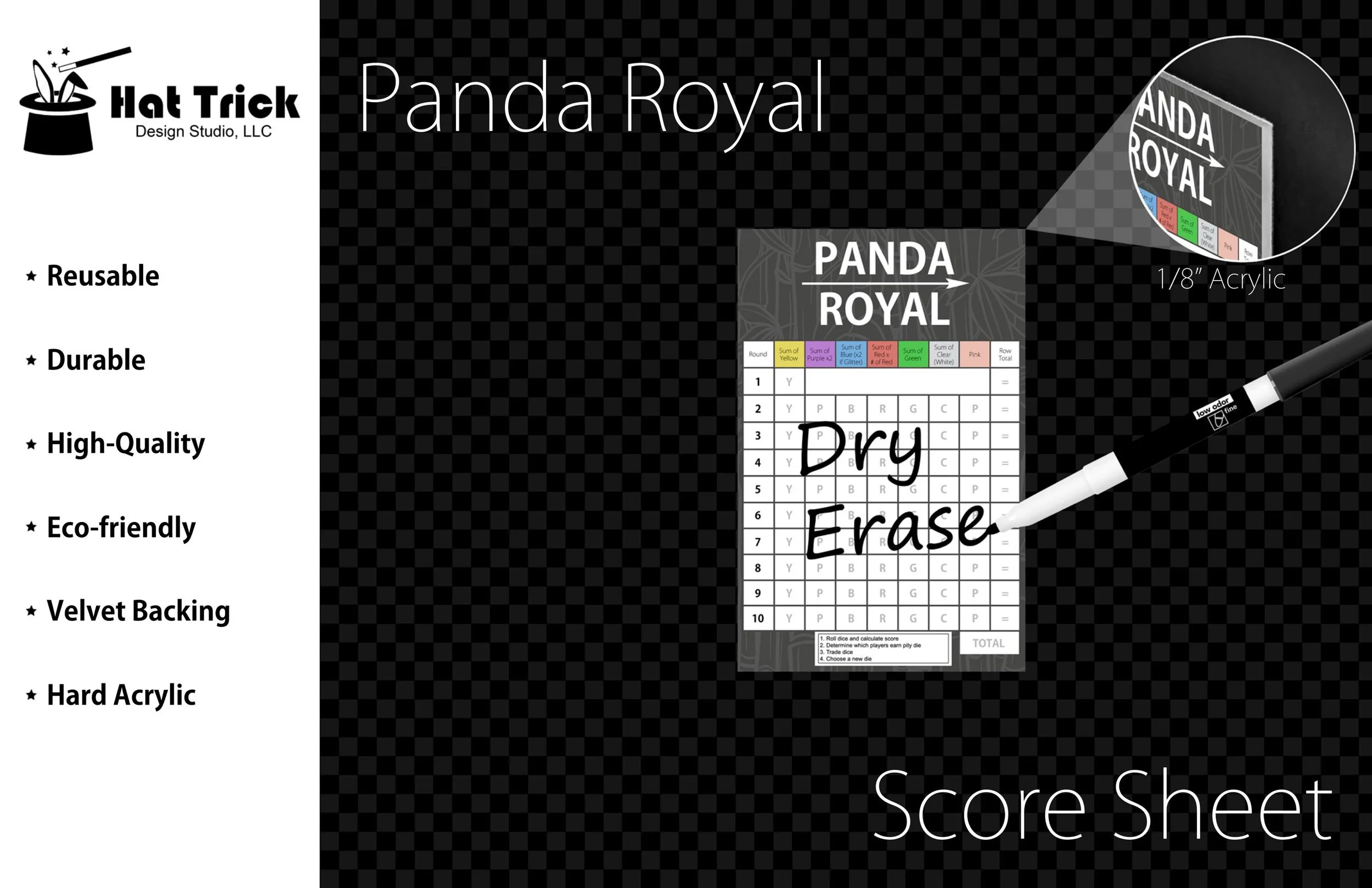 Premium Acrylic Panda Royal Score Sheet Upgrade, Unofficial, Reusable, Wet Erase and Dry Erase