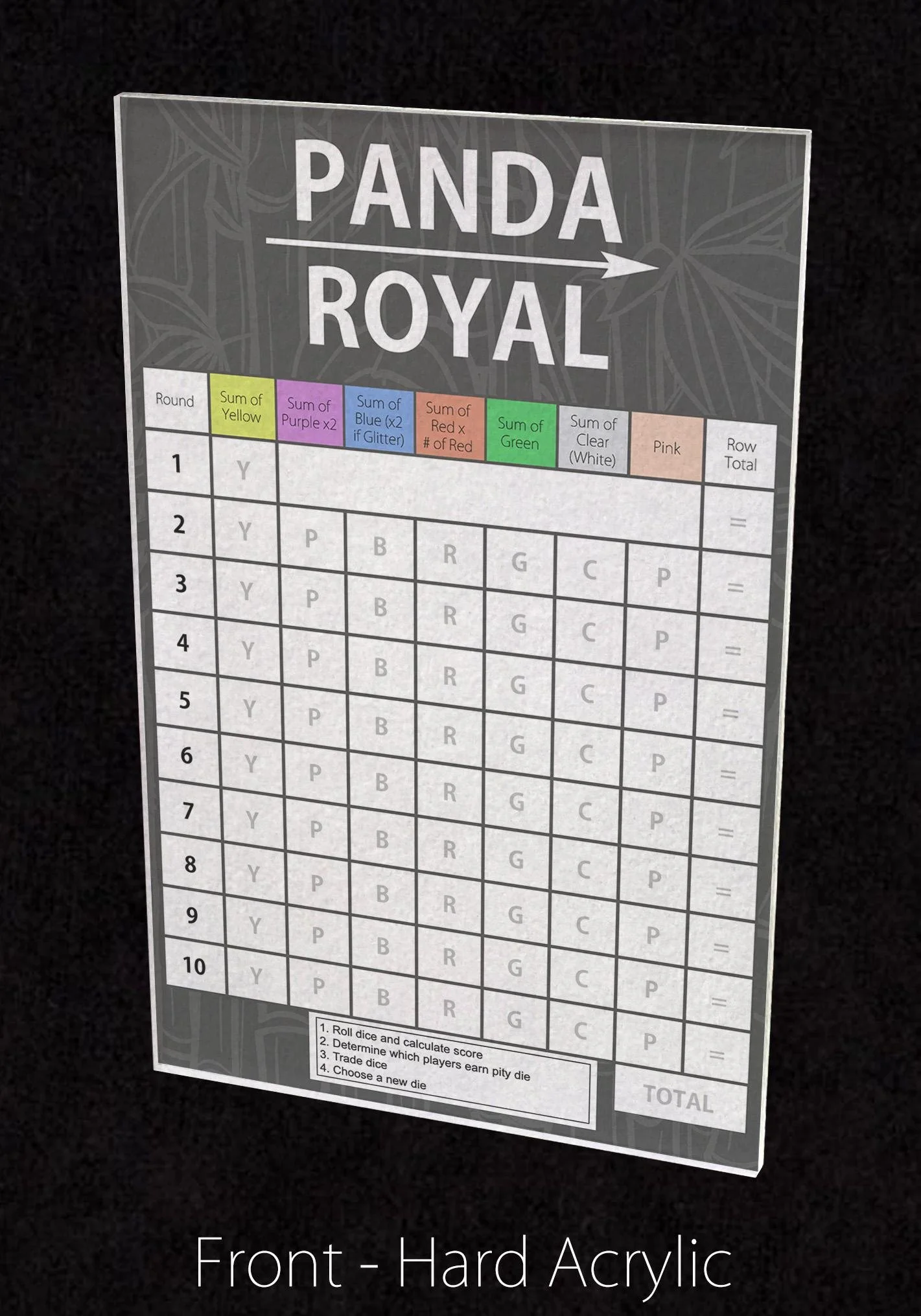 This listing is for one (1) Premium Acrylic Panda Royal Score Sheet, but you can order as many as you need.