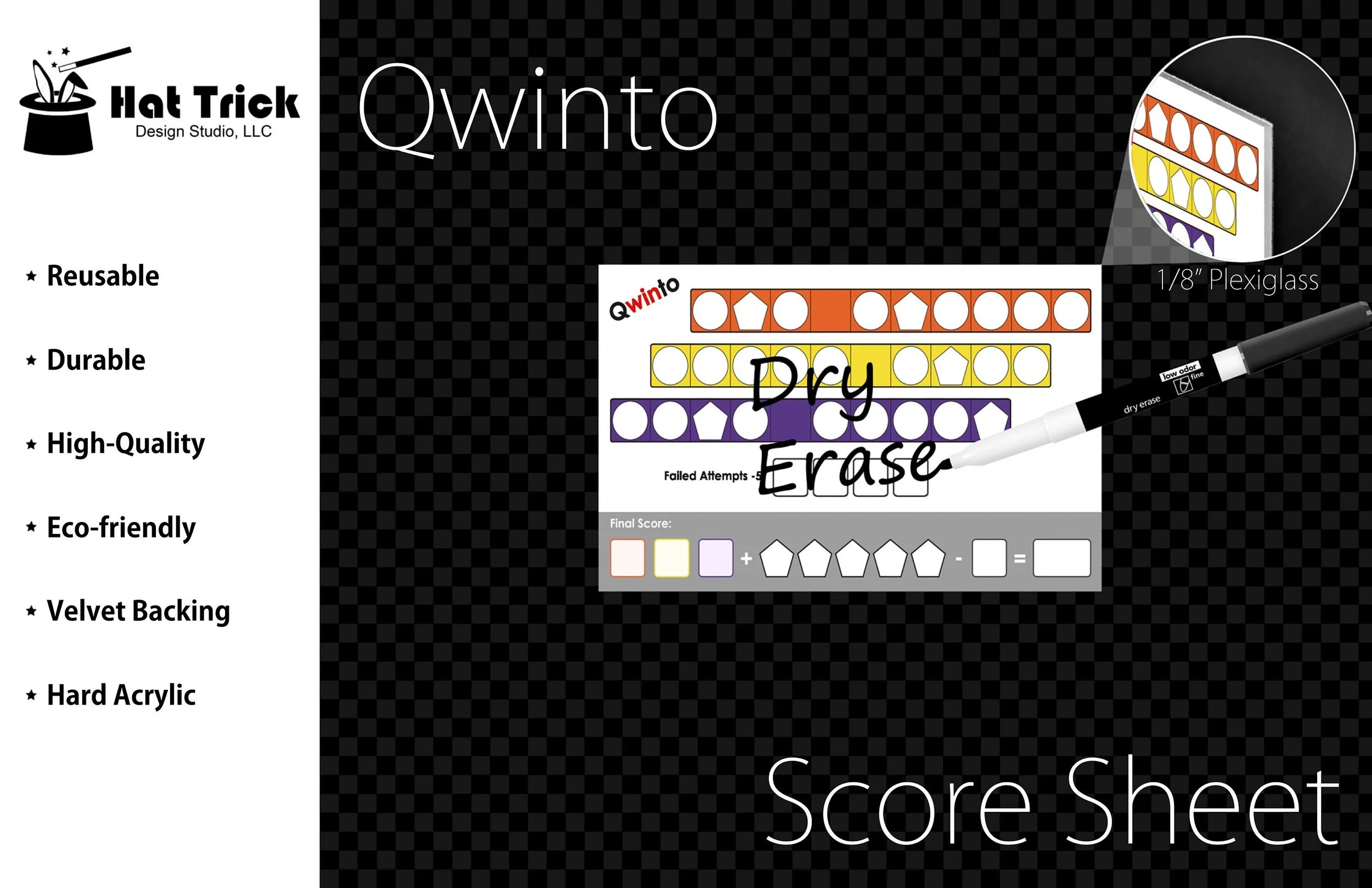Premium Acrylic Qwinto Score Sheet Upgrade, Reusable, Wet Erase and Dry Erase