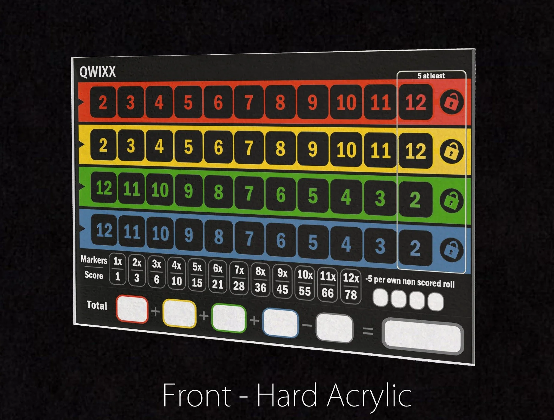 Premium Acrylic Qwixx Blakk Score Sheet Upgrade, Reusable, Dry Erase