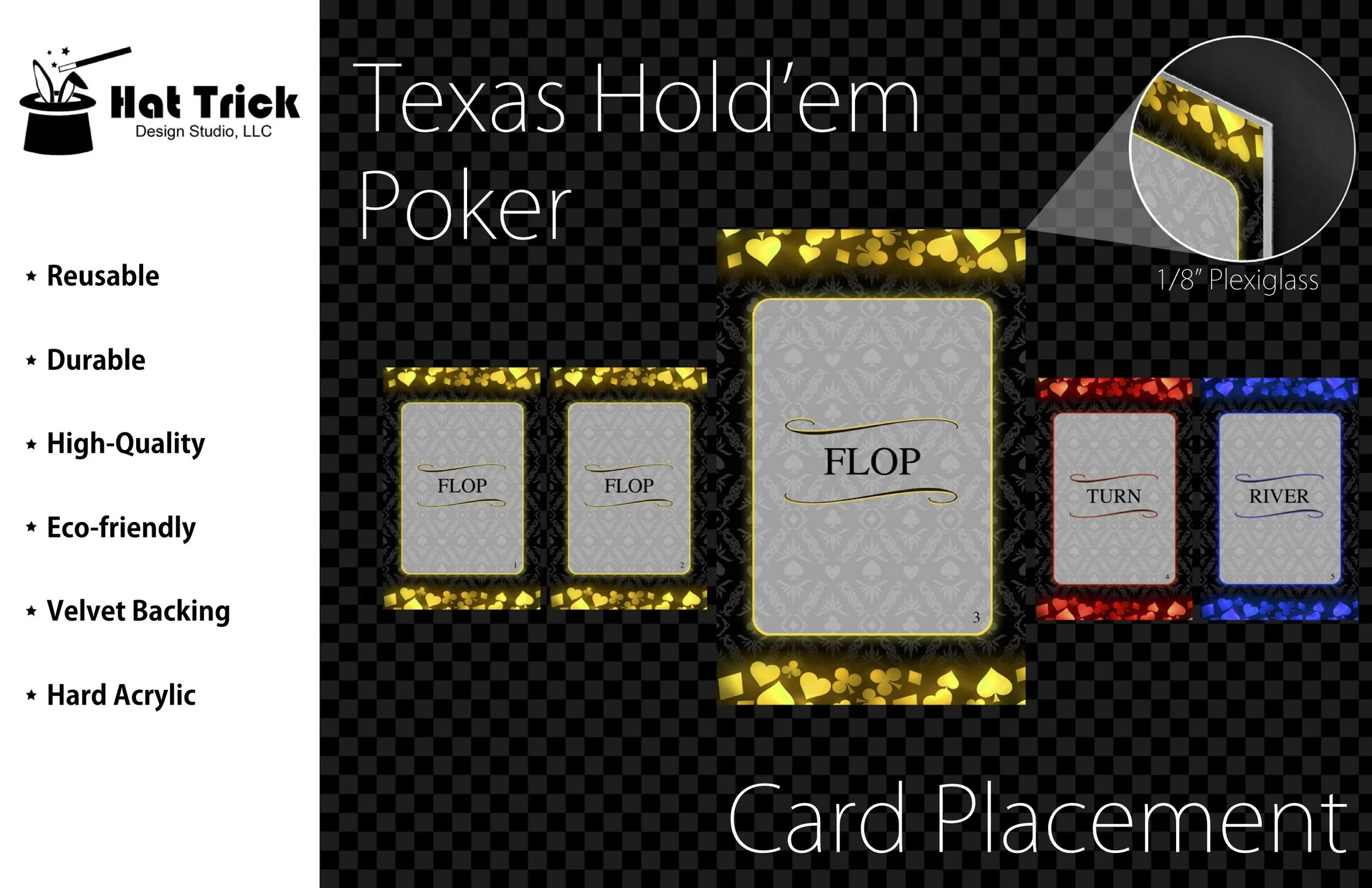 Premium Acrylic Texas Hold'em Poker Card Placement Plaques, Flop, Turn, River