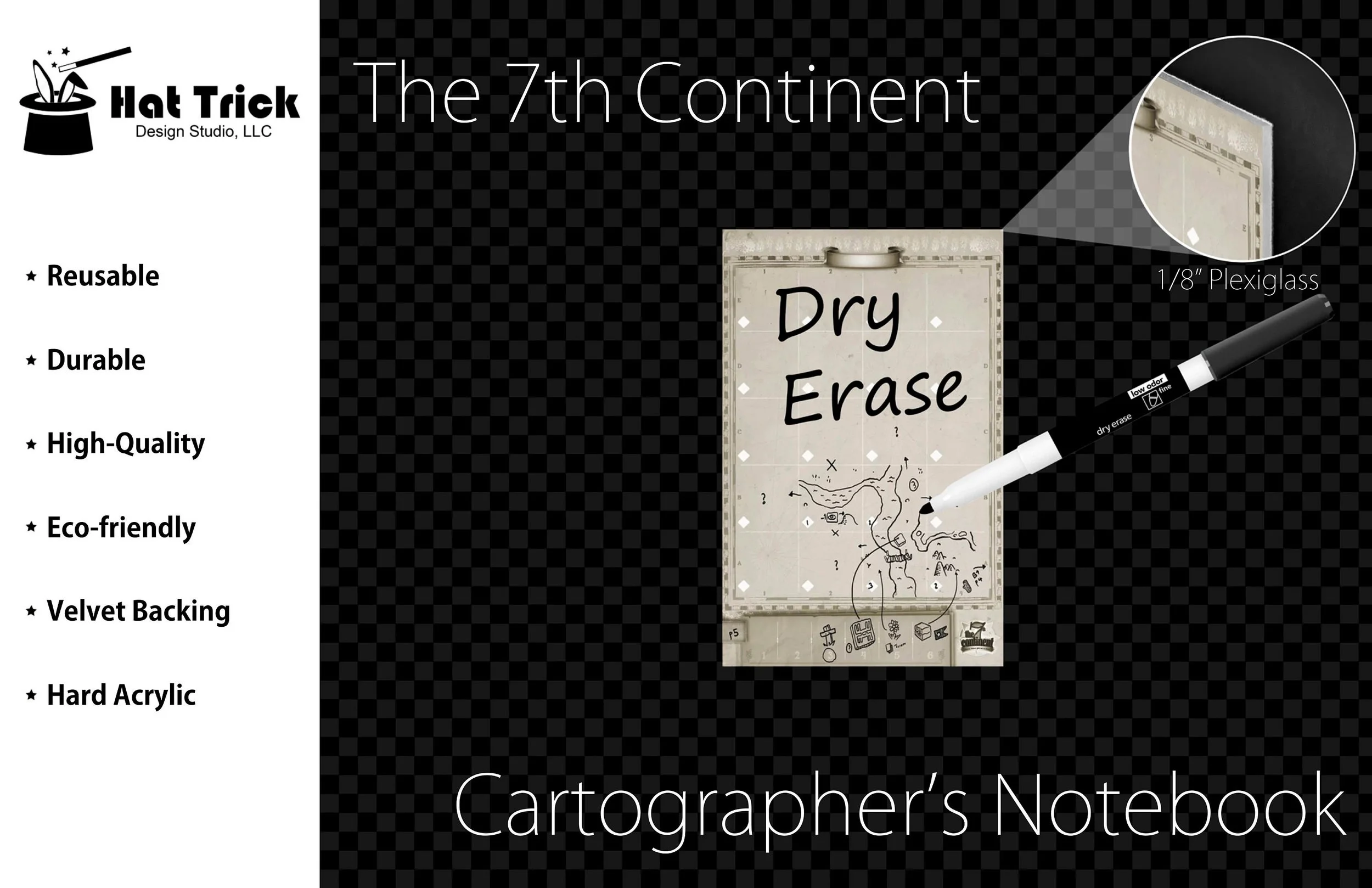 Premium Acrylic The 7th Continent Cartographer's Notebook Upgrade, Reusable, Wet Erase and Dry Erase