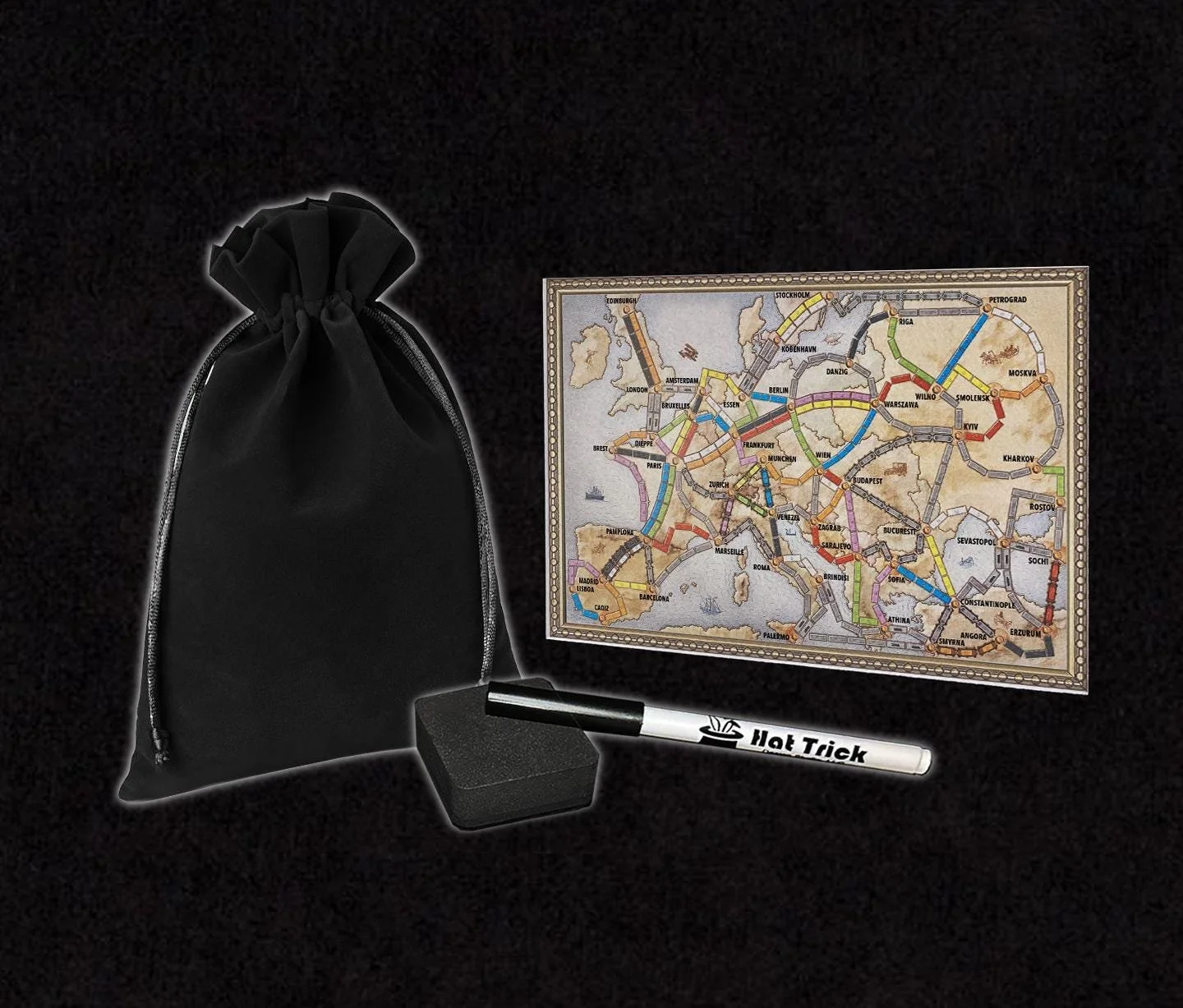 These Ticket to Ride Europe Route Planning Maps are made of 1/8" PREMIUM ACRYLIC. The backing is finished with a white velvet material that is SOFT TO THE TOUCH to protect playing surfaces. Made in the USA with premium DURABLE materials to last for years.