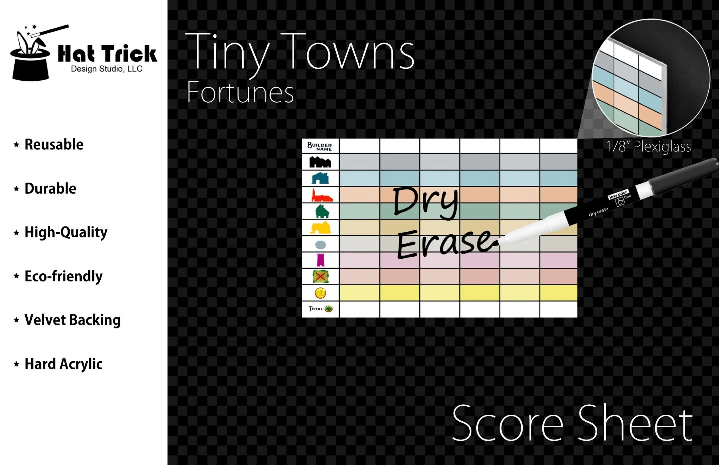 Premium Acrylic Tiny Towns Fortunes Score Sheet Upgrade, Reusable, Dry Erase