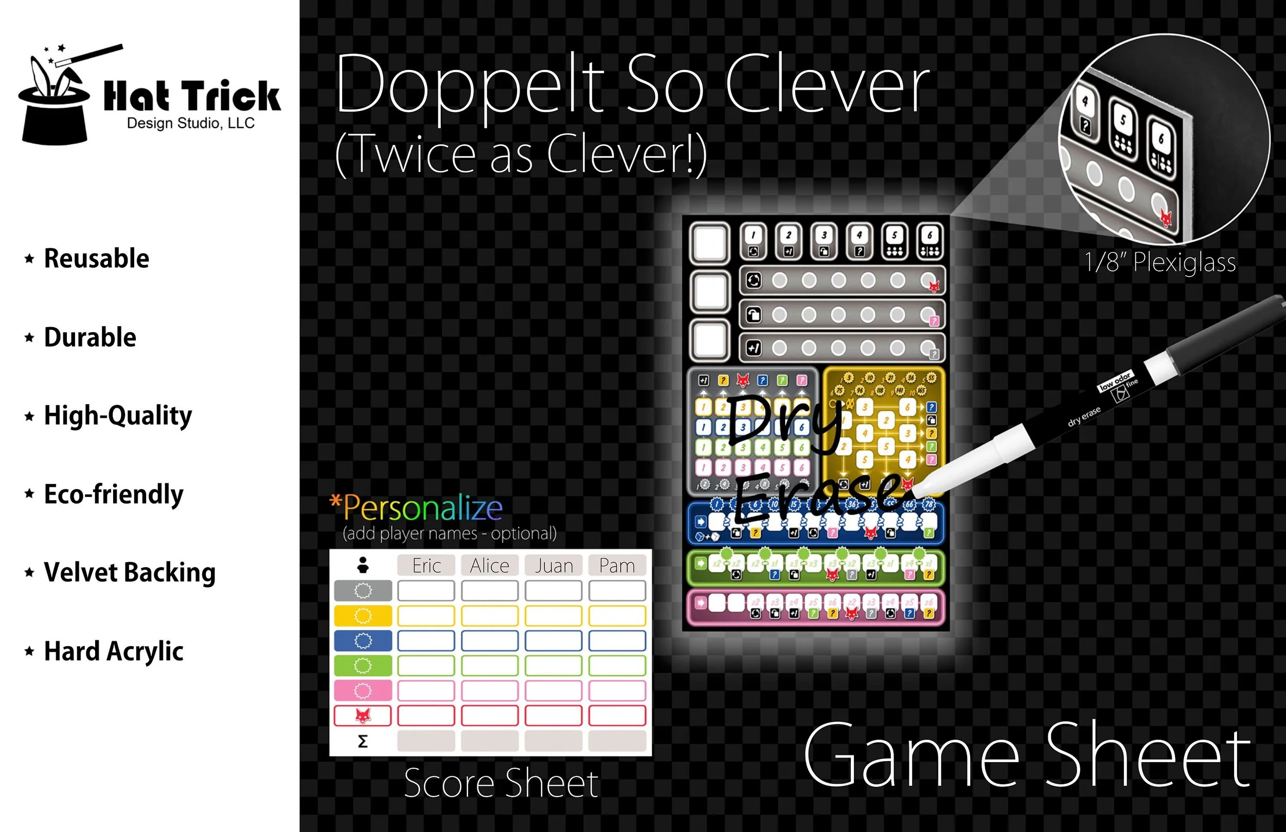 Premium Acrylic Twice as Clever Score Sheet Upgrade, Reusable, Dry Erase