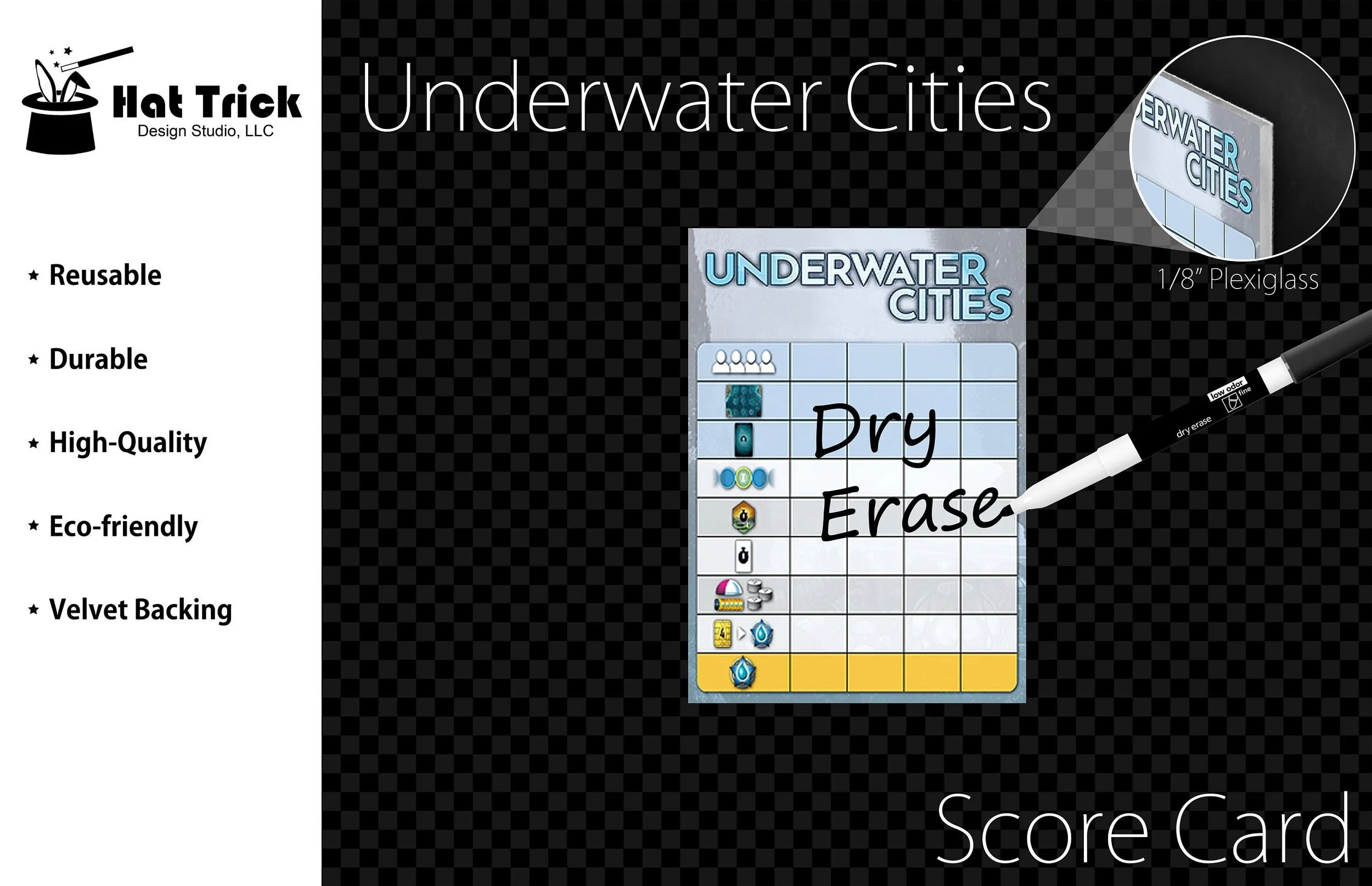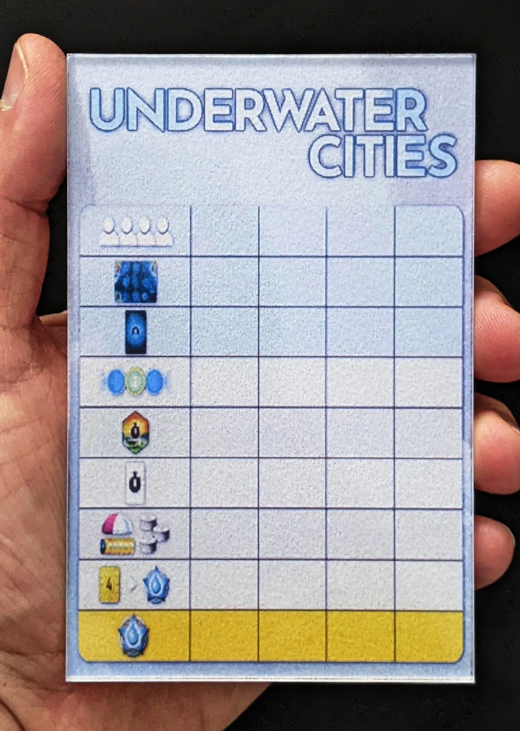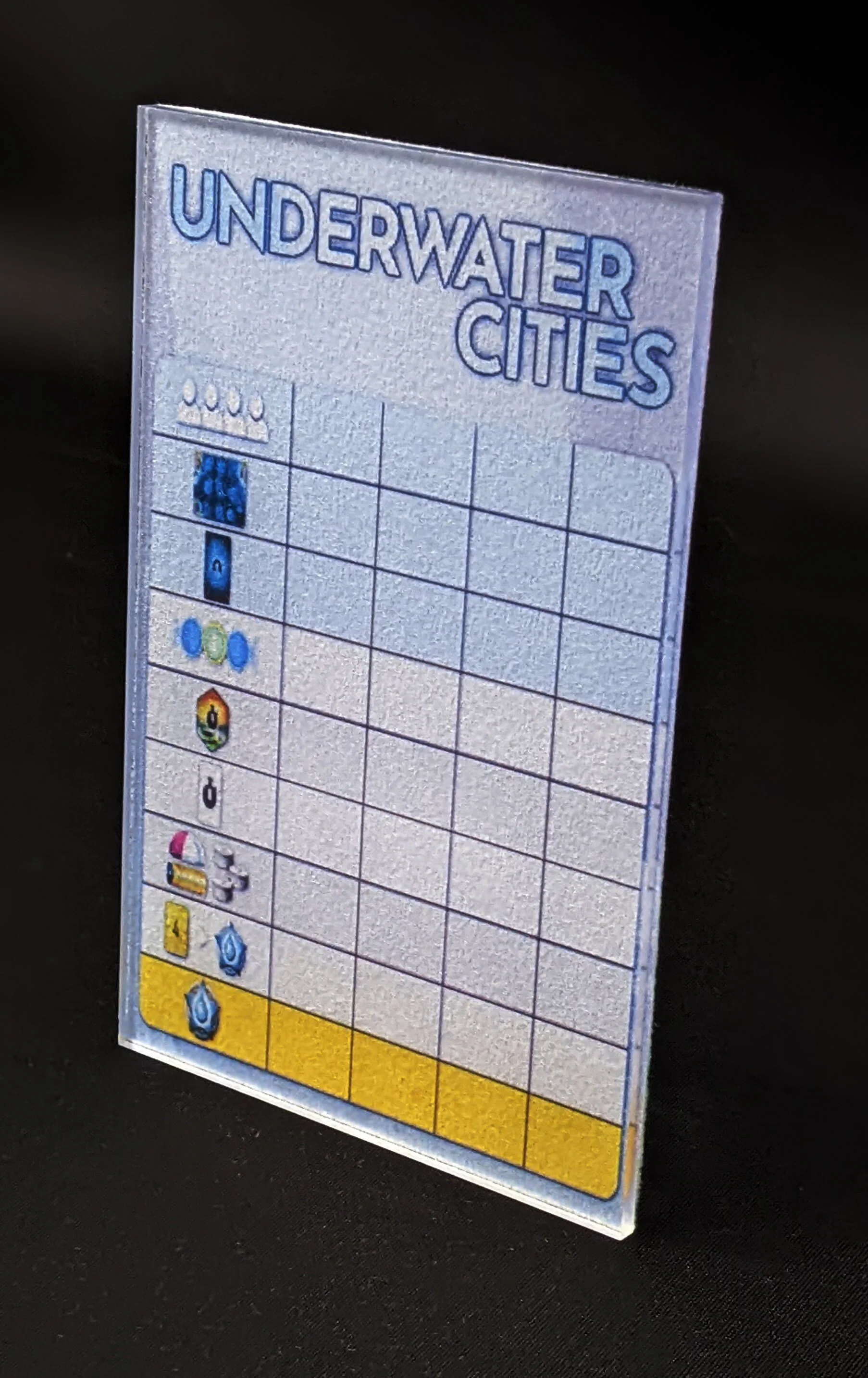 Premium Acrylic Underwater Cities Score Sheet Upgrade, Reusable, Wet Erase and Dry Erase