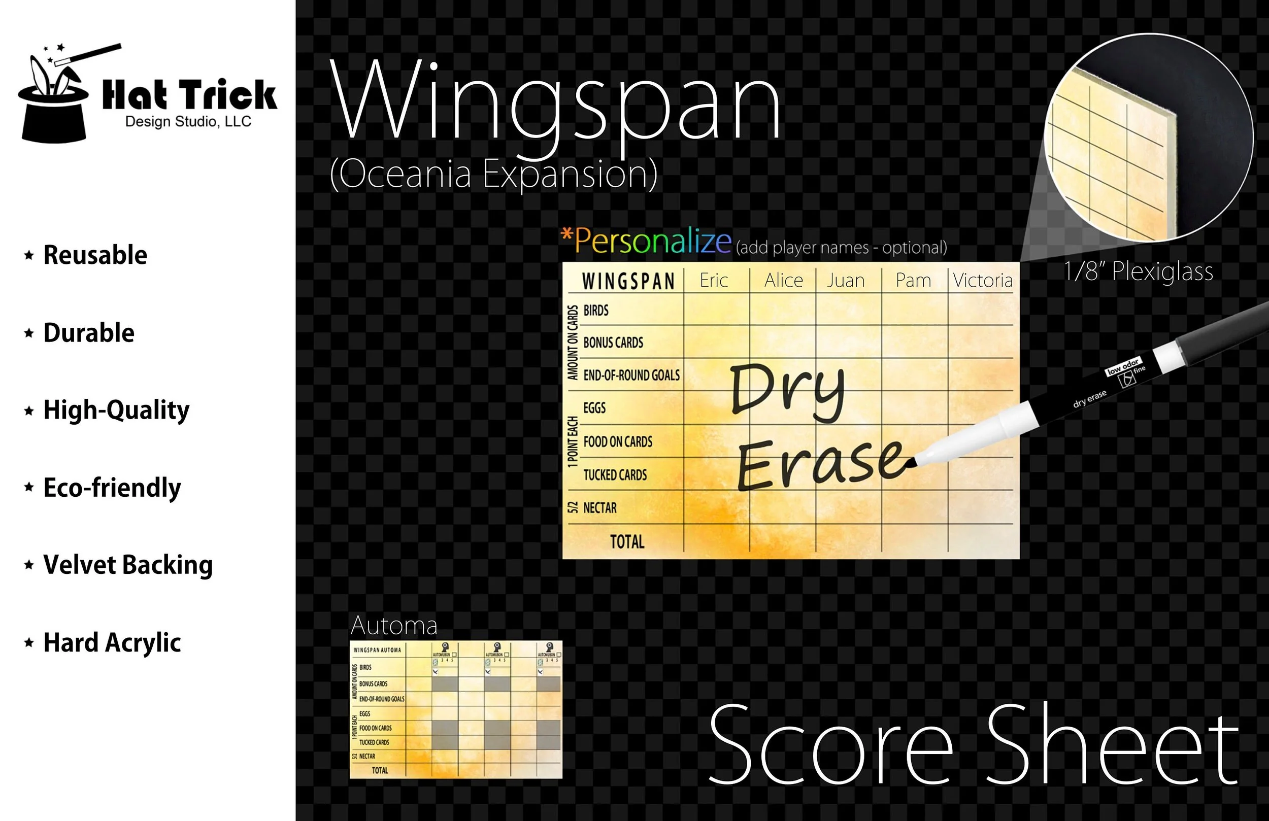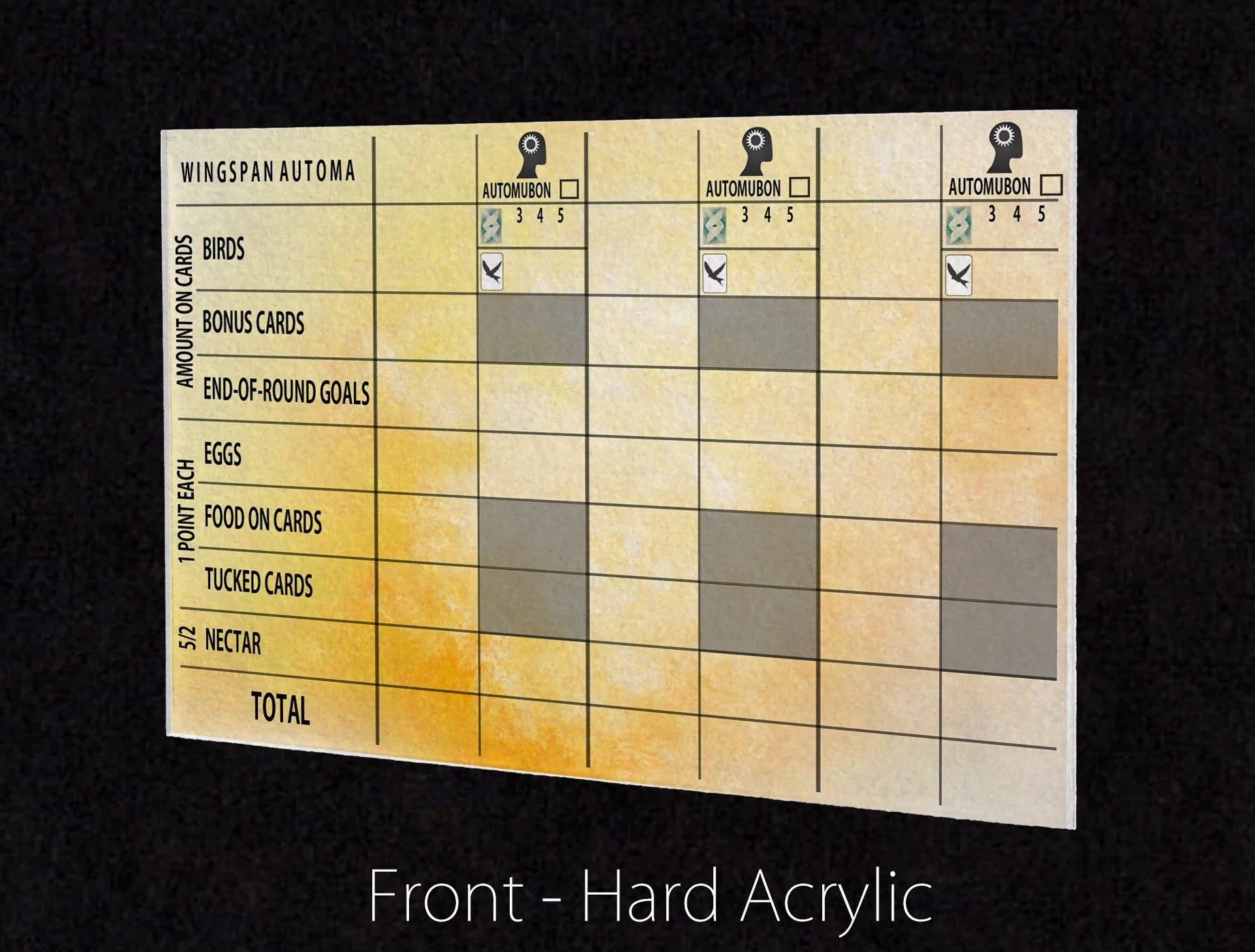 Premium Acrylic Wingspan Score Sheet Upgrade, Reusable, Wet Erase and Dry Erase